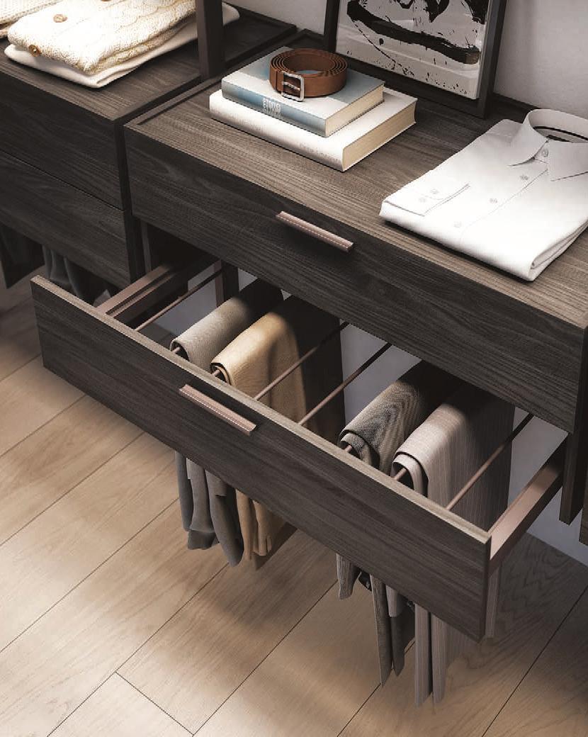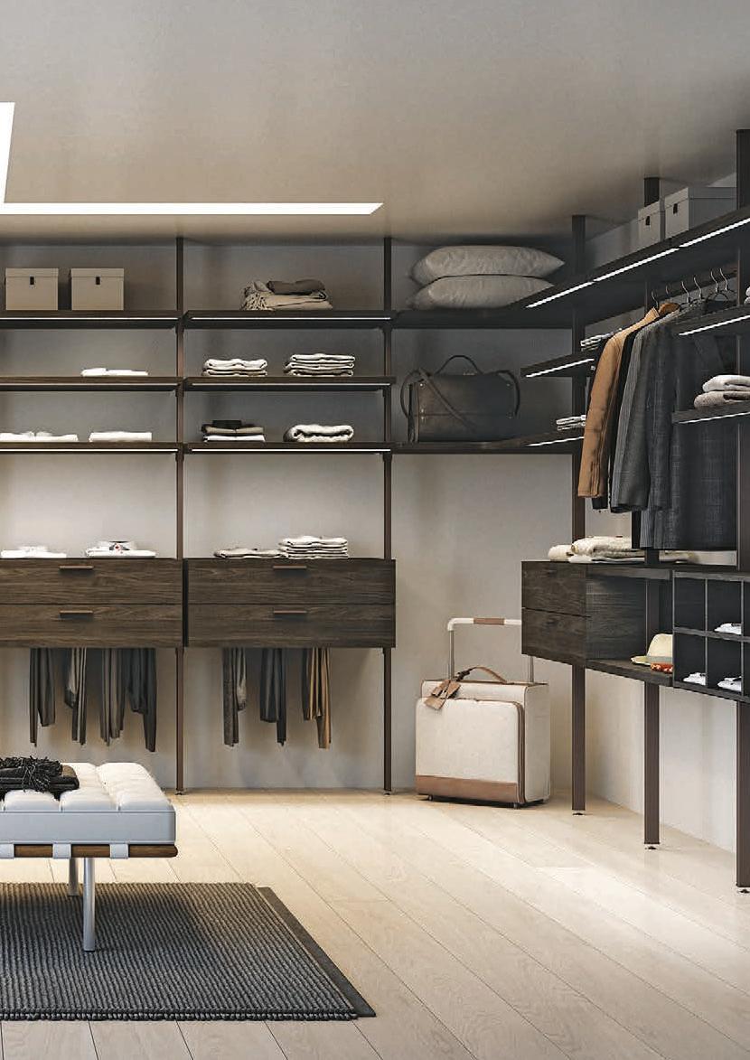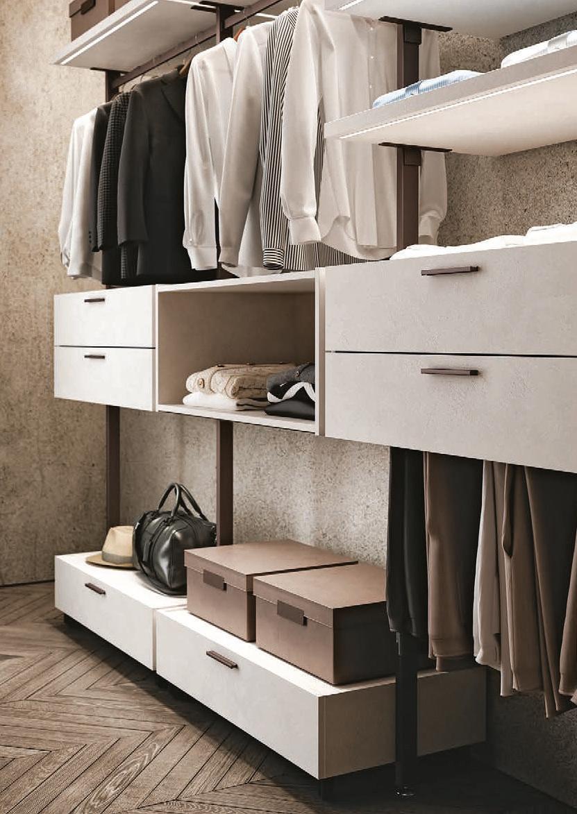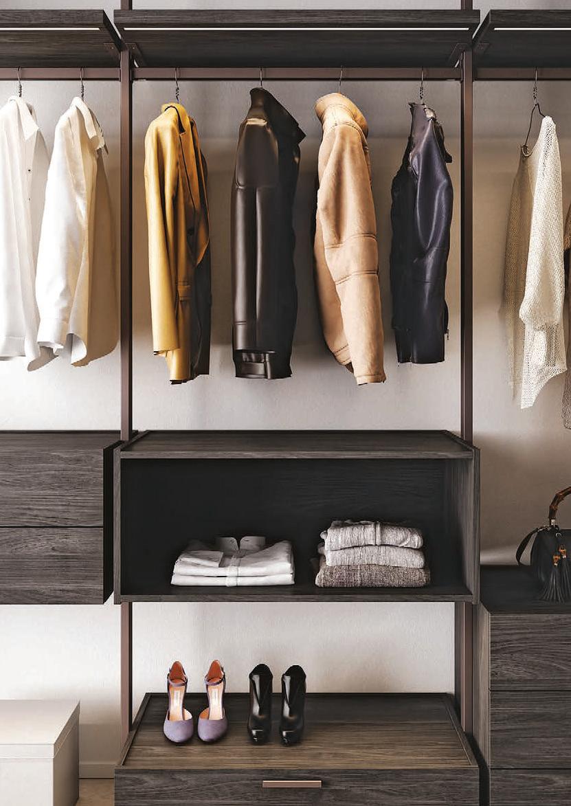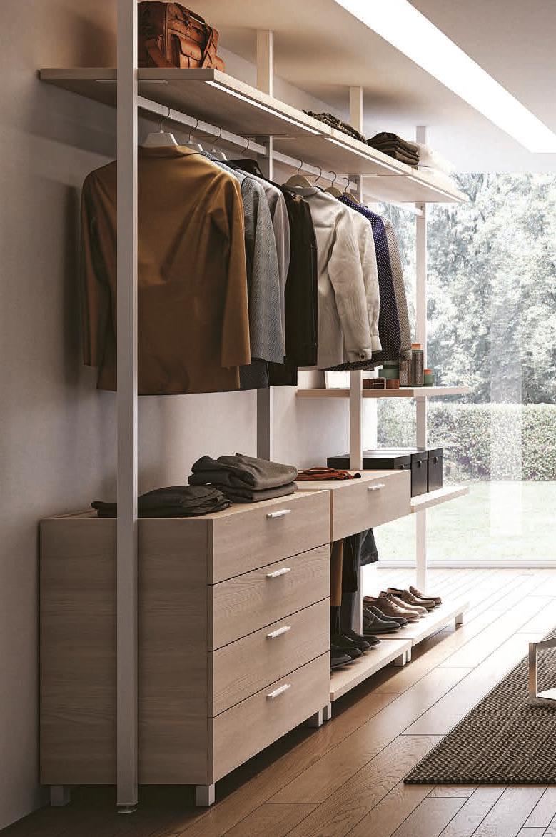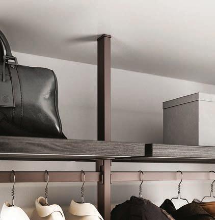 Bikomp e Bicloset sono due modi relativamente diversi di progettare la cabina armadio. Bikomp si basa su un sostegno a palo a cui si agganciano le attrezzature modulari, posizionabili all’altezza desiderata.