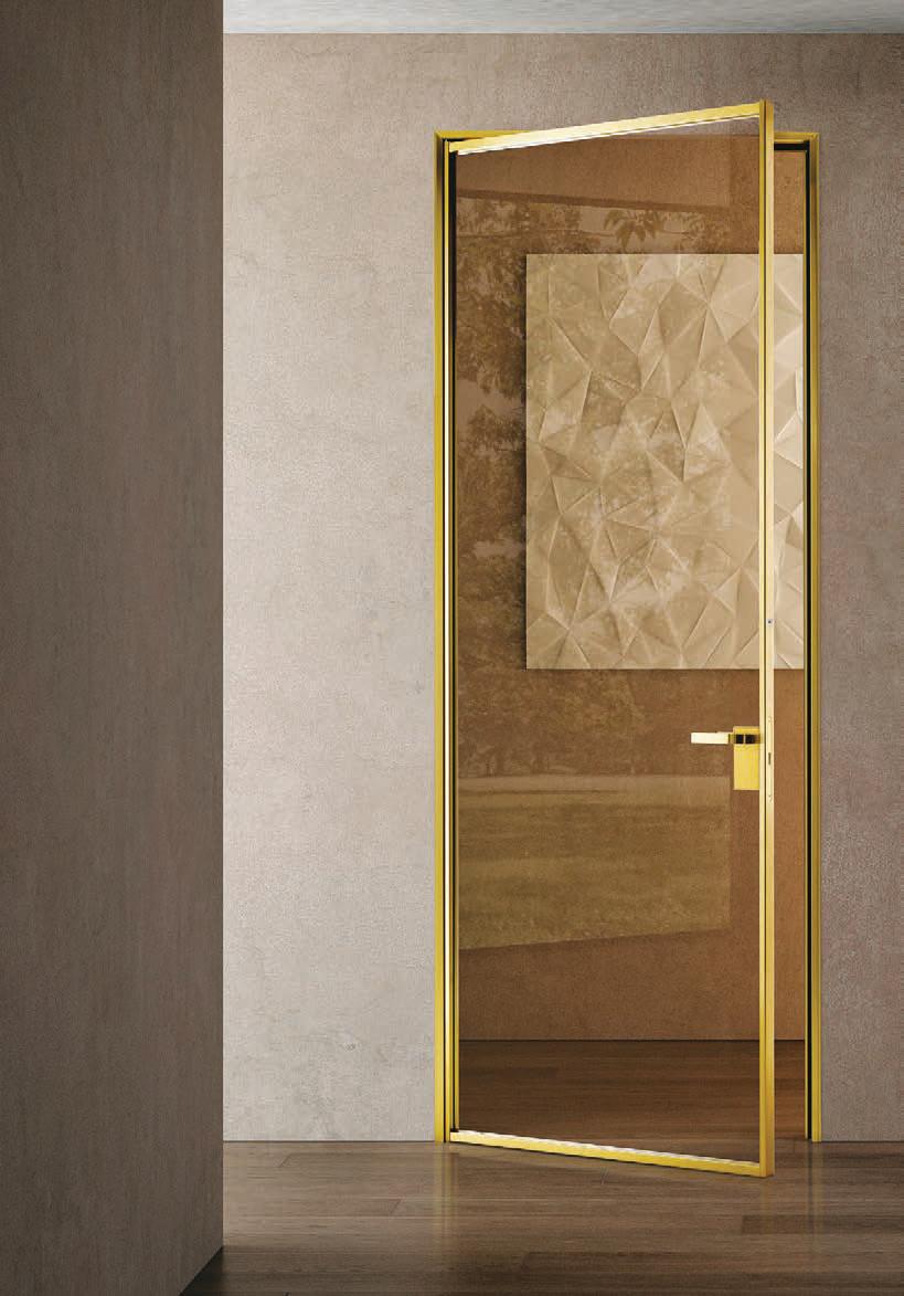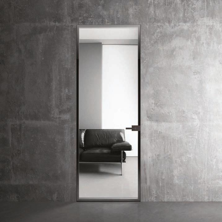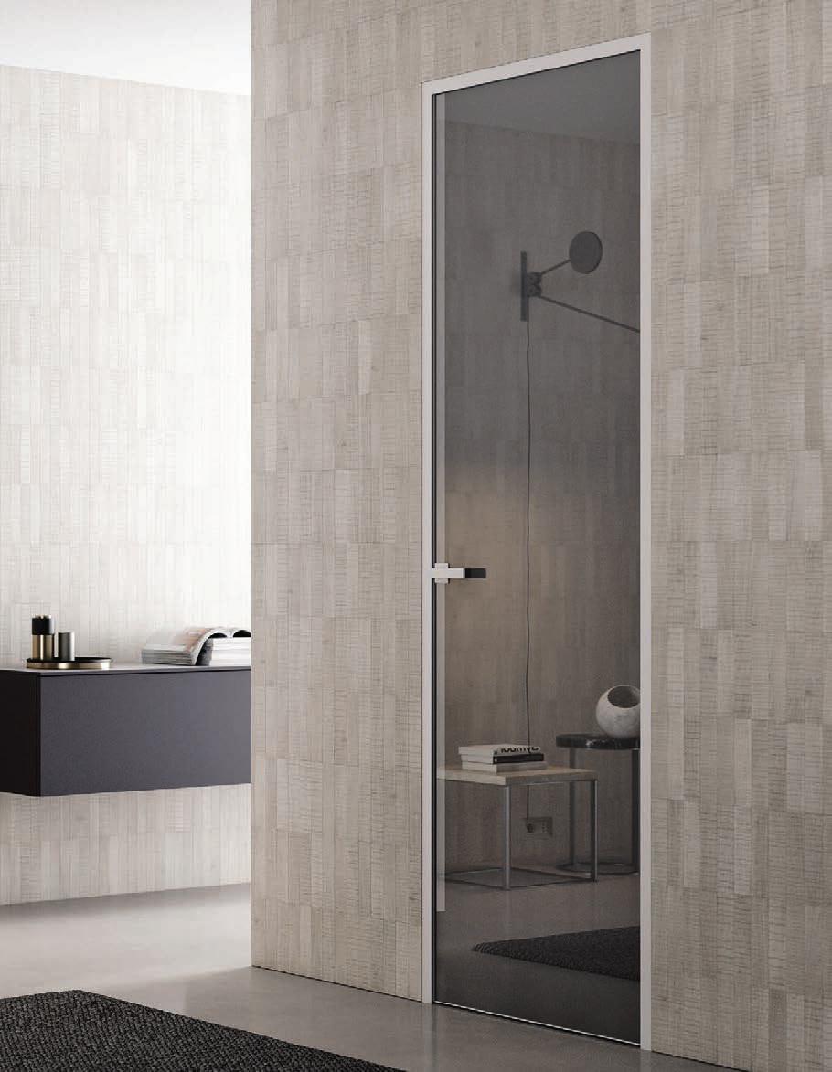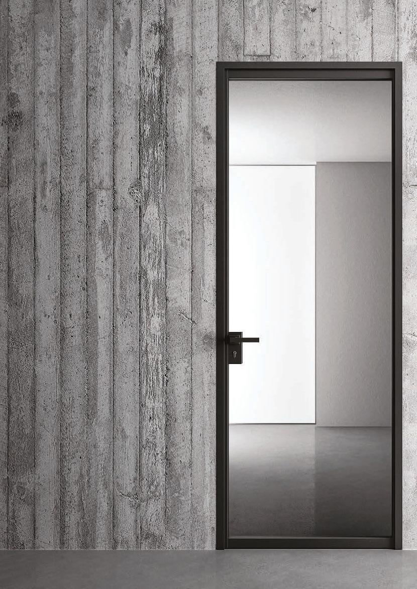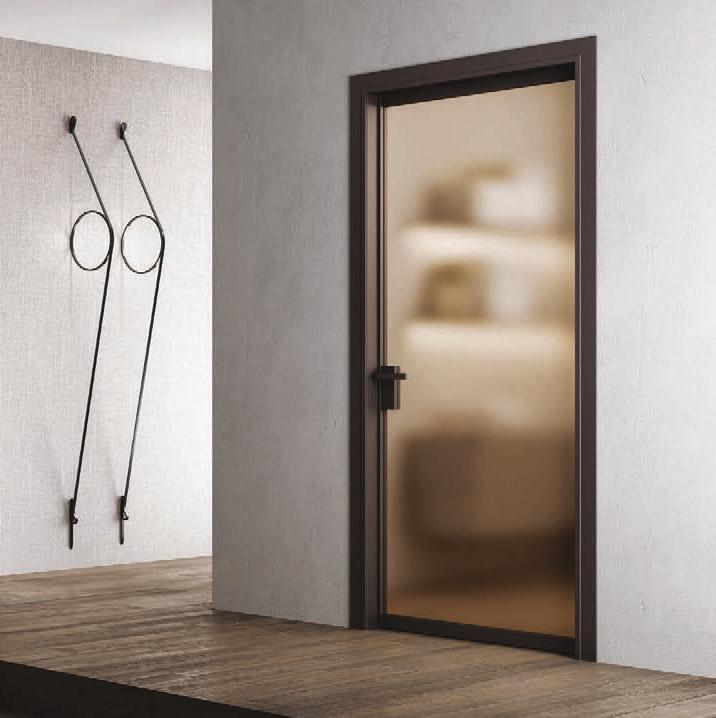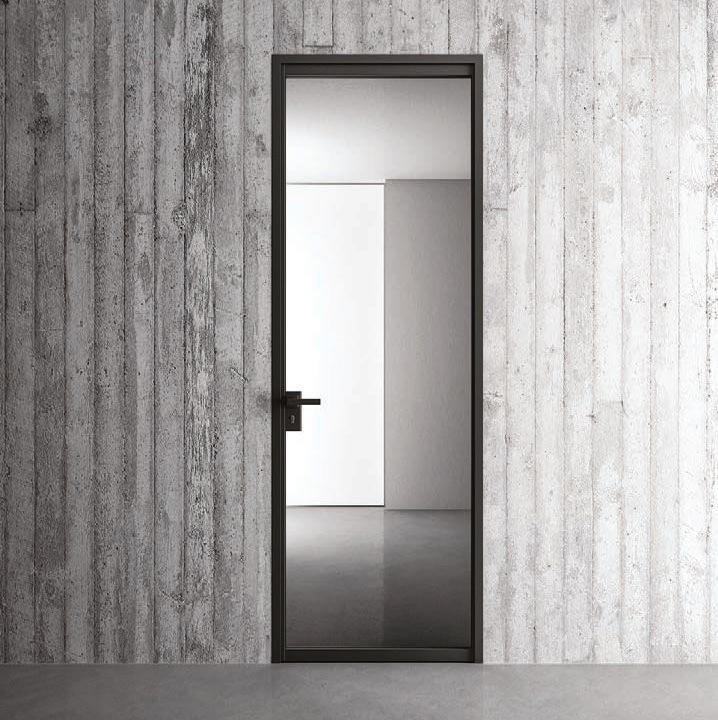 flush doors are the highest expression of style: minimal and refined, the flush to the wall door with glass and aluminium frame matches with its surroundings.