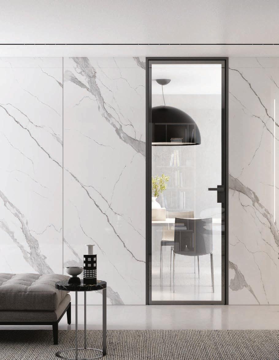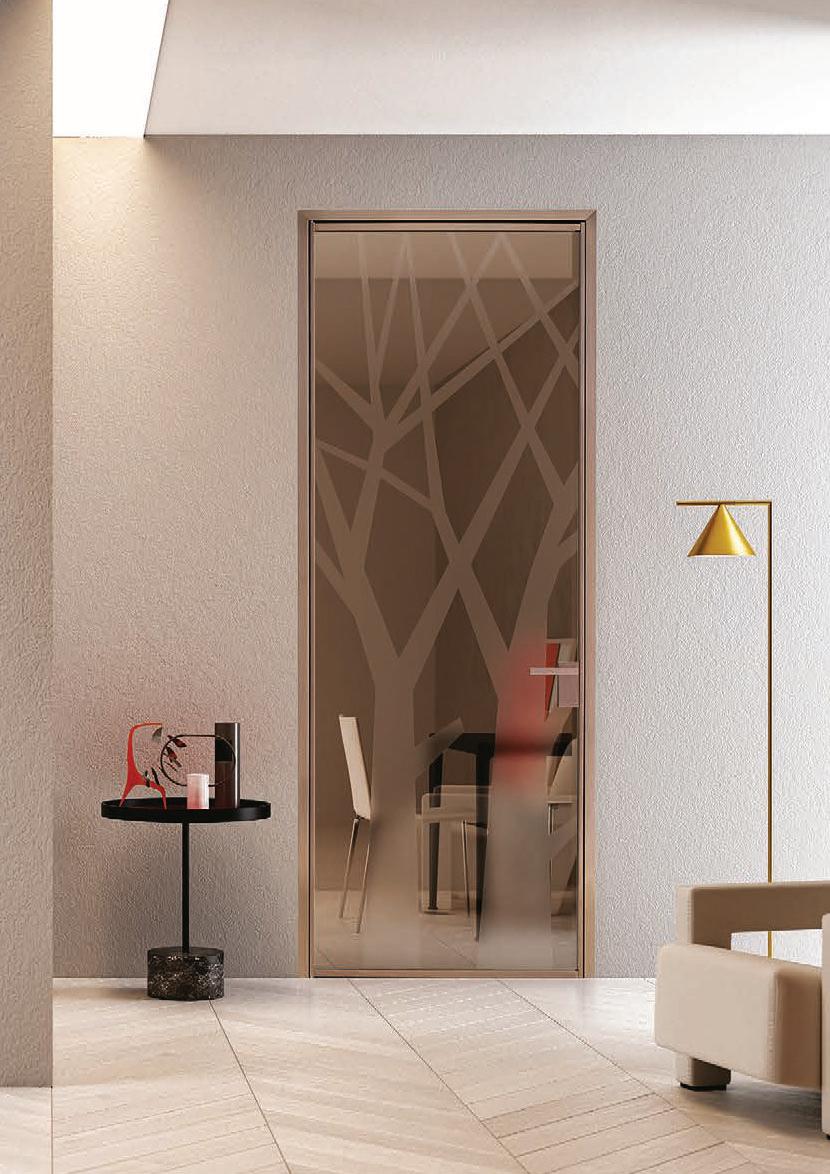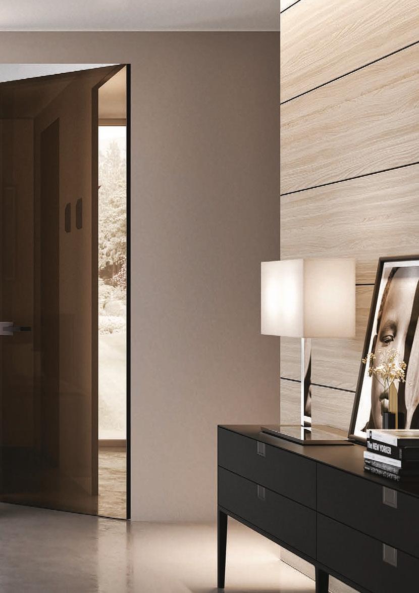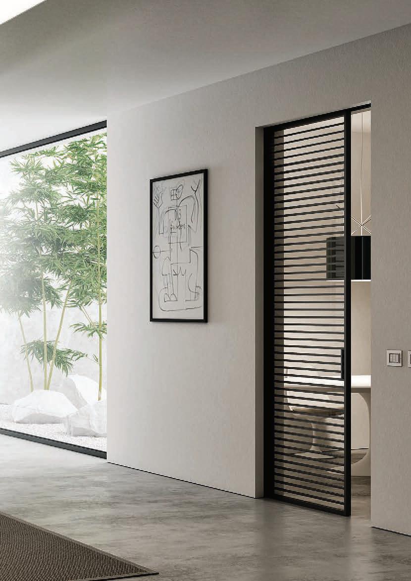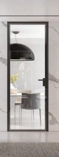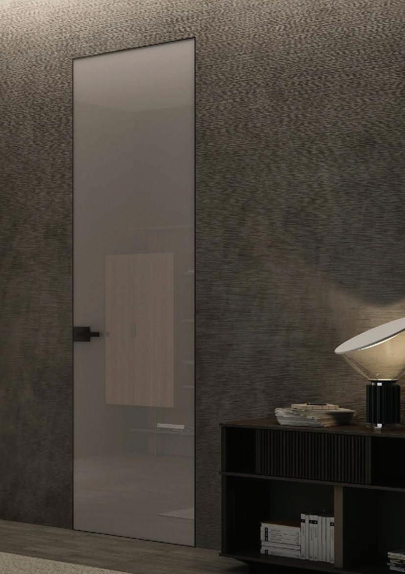 flush doors are the highest expression of style: minimal and refined, the flush to the wall door with glass and aluminium frame matches with its surroundings.