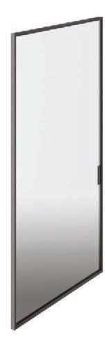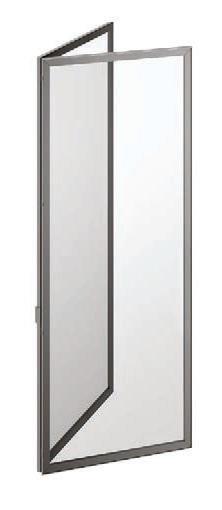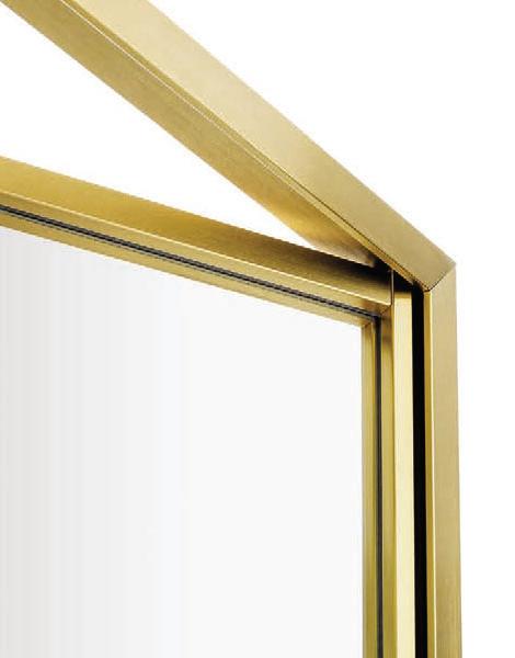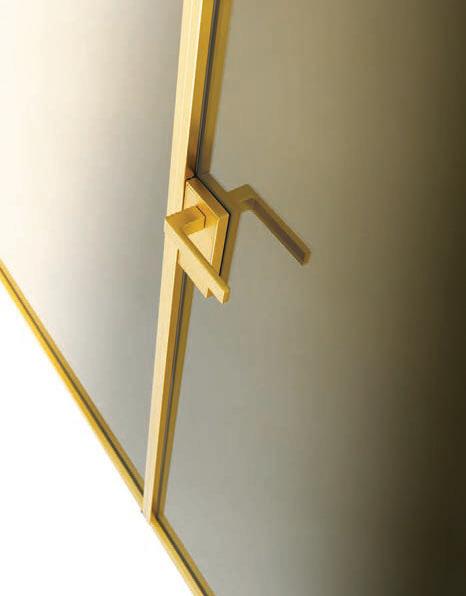Hinged doors with aluminium structure, finshes: Bronze, Champagne, Gold. Safety glazing (tempered or laminated).