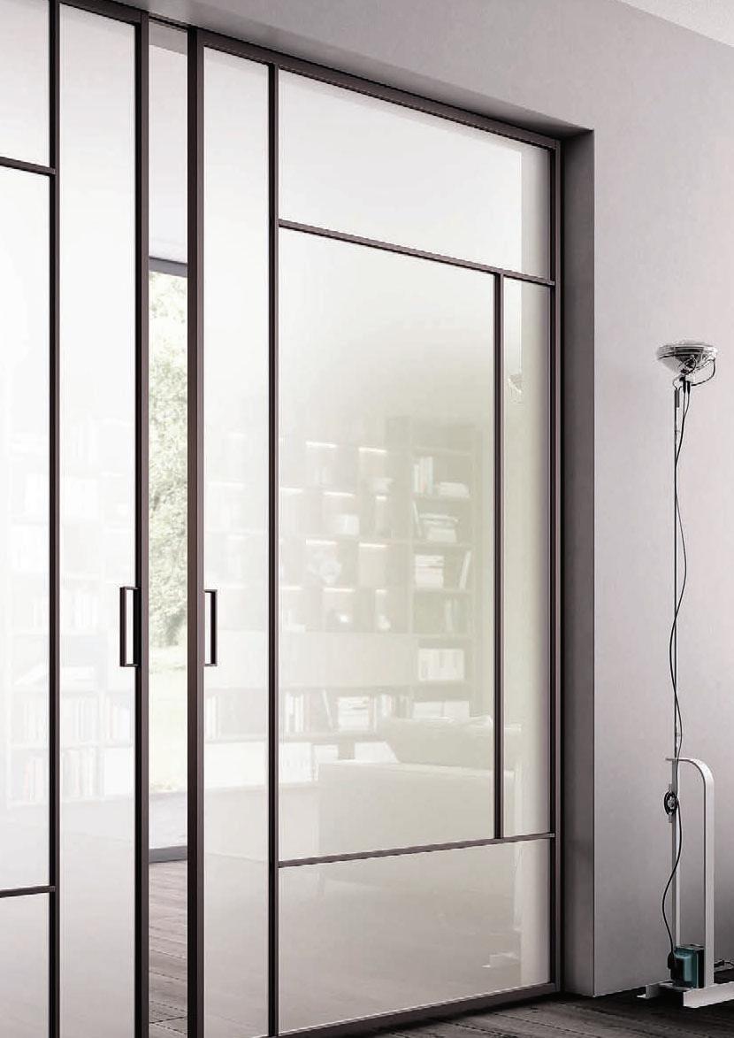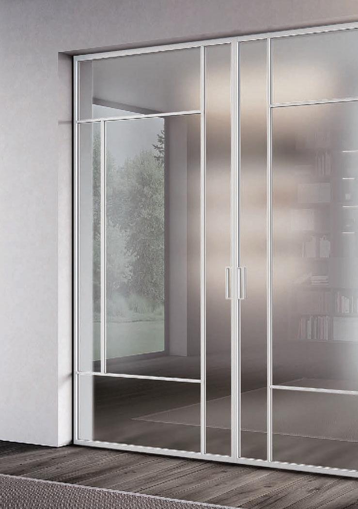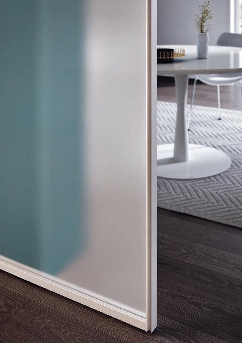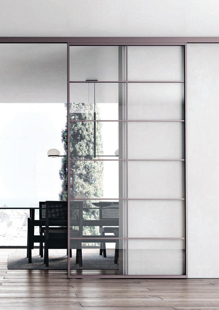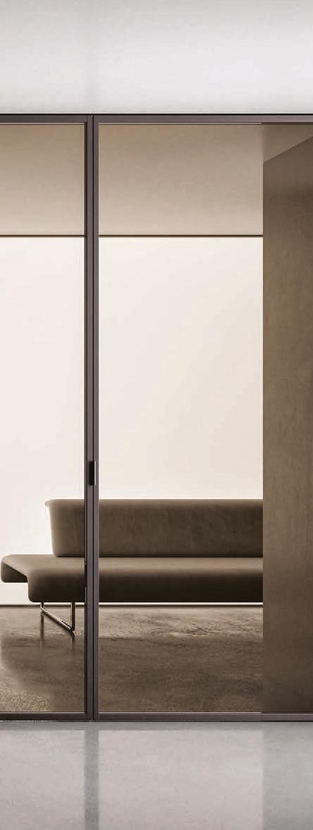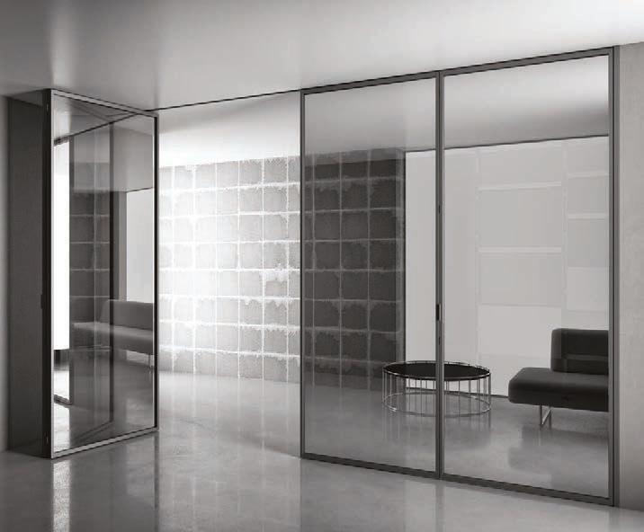 Pag. 48: Plana System con binario a incasso, porte divisionali scorrevoli Unik, struttura alluminio finitura