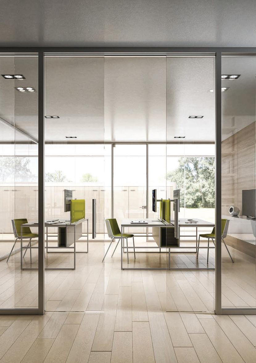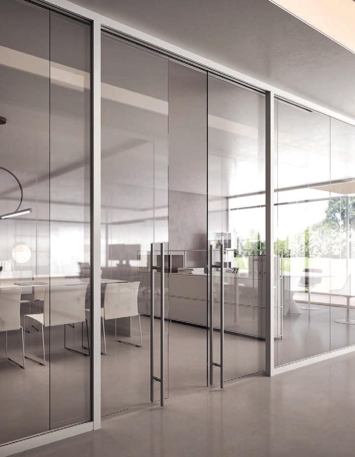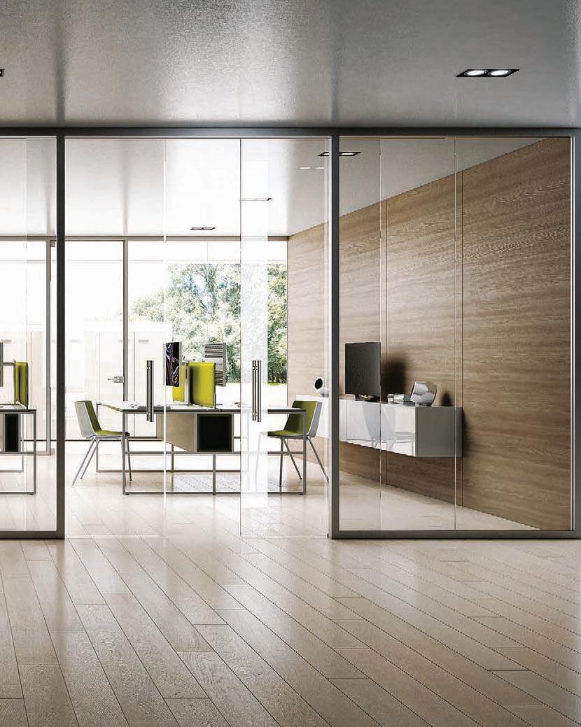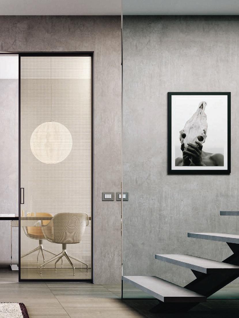 Pag. 48: Plana System con binario a incasso, porte divisionali scorrevoli Unik, struttura alluminio finitura