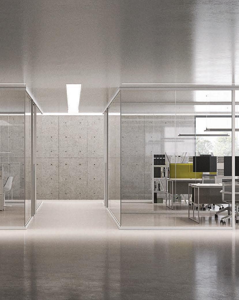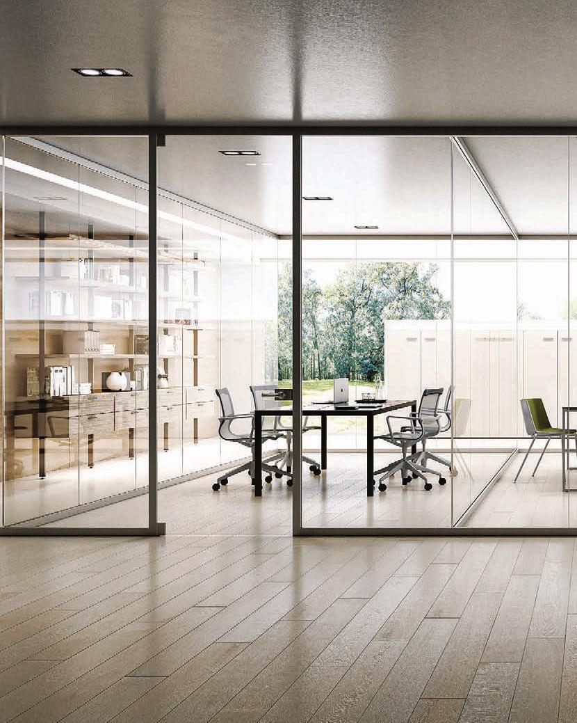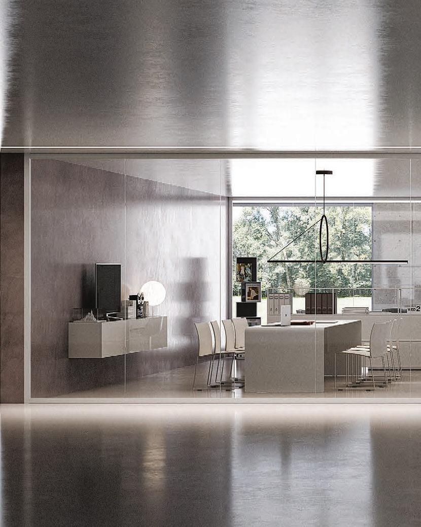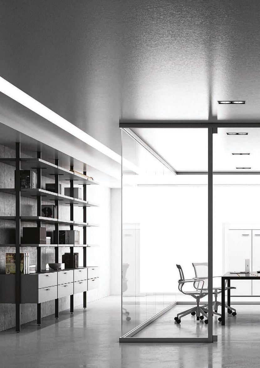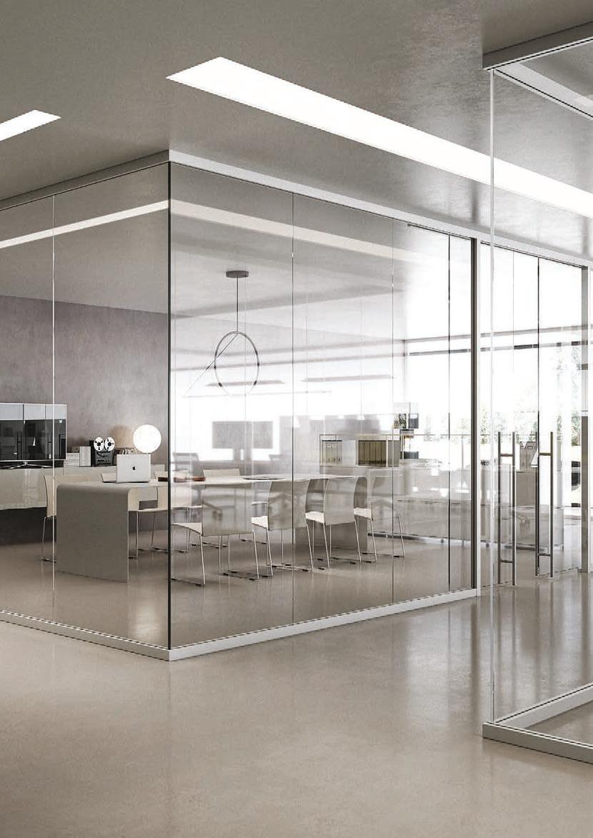 Pag. 48: Plana System con binario a incasso, porte divisionali scorrevoli Unik, struttura alluminio finitura