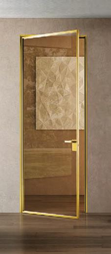 Porta a battente con struttura in alluminio, finiture: Bronze, Champagne, Gold. Cristallo di sicurezza (temperato o stratificato).