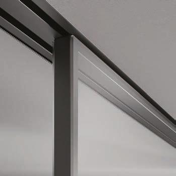 aluminium structure, finshes: Brown, Antracite, Bianco and Argento. Panelling with safety glazing (tempered or laminated).