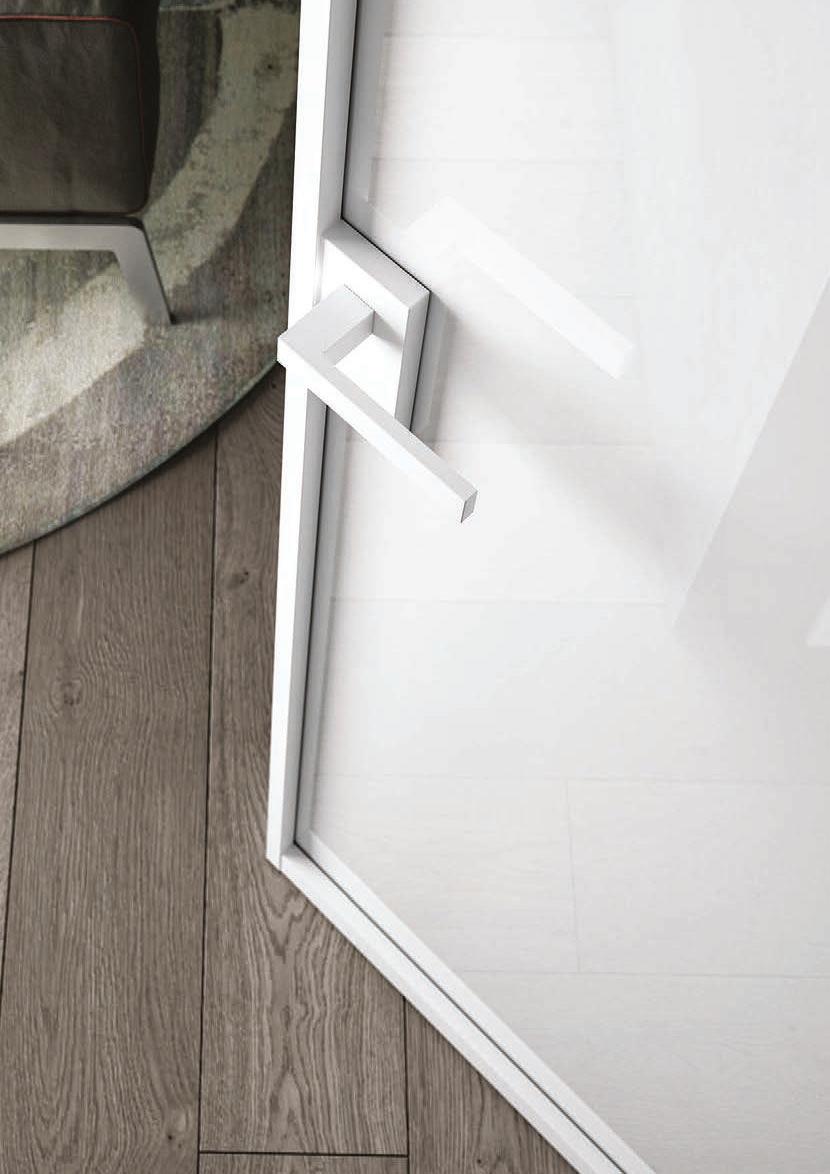 Hinged doors with aluminium structure, finshes: Brown, Antracite, Bianco and Argento. Safety glazing (tempered or laminated). LIGHT battente
