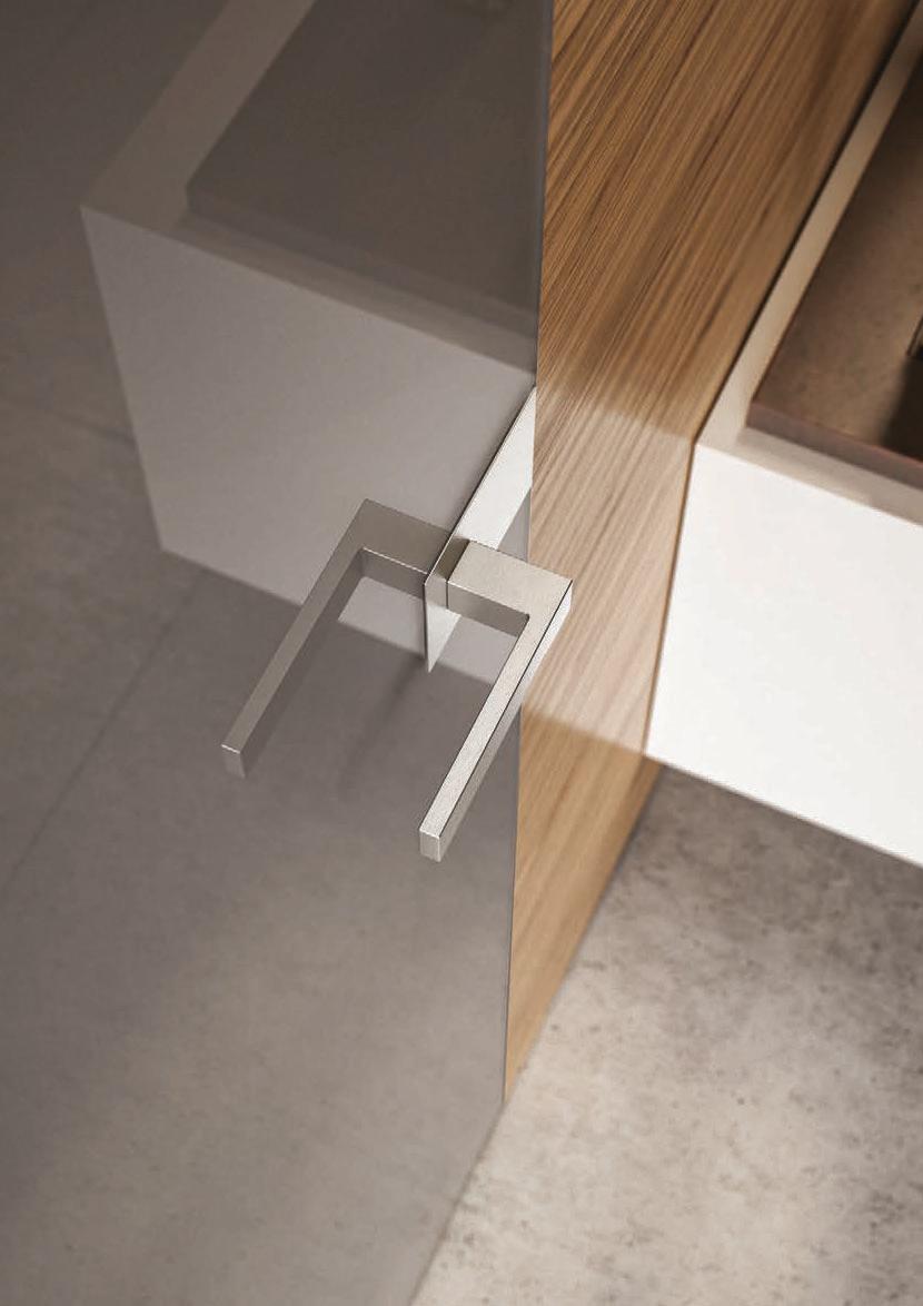 Antracite, cristallo con trama Lino Bianco, maniglia Slide.