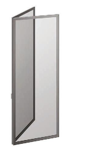 Hinged doors with aluminium structure, finshes: Brown, Antracite, Bianco and Argento. Panelling with safety glazing (tempered or laminated).