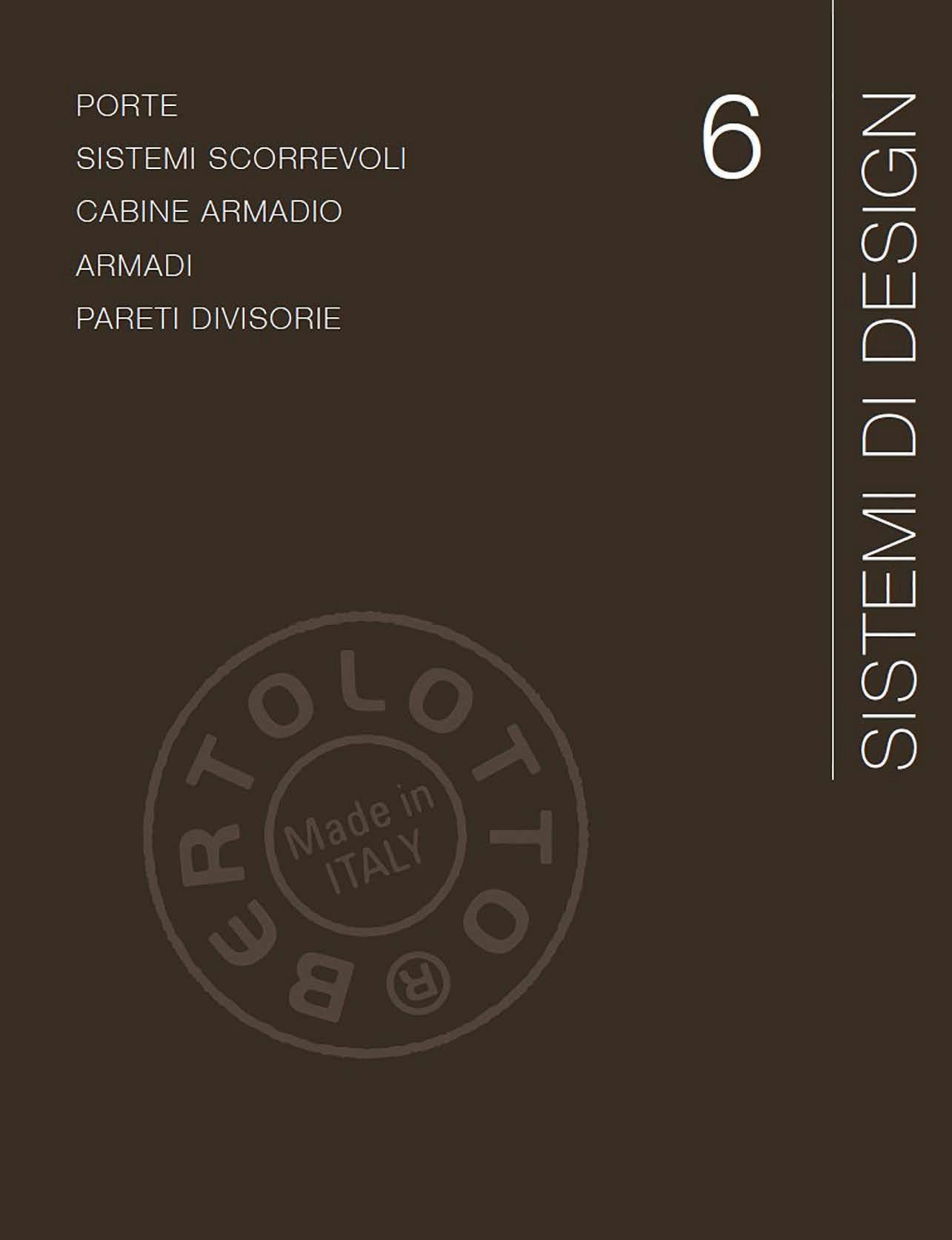 Bertolotto S.p.A. si riserva il diritto di apportare, senza preavviso, ogni modifi ca volta al miglioramento funzionale e qualitativo dei prodotti. Le informazioni e i disegni rappresentati in questo catalogo, oltre ad avere carattere puramente illustrativo, sono suscettibili di variazioni. I campioni di colori e materiali presentati in questo stampato hanno un valore indicativo compatibilmente con i limiti di riproduzione e stampa.