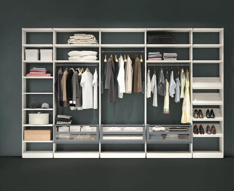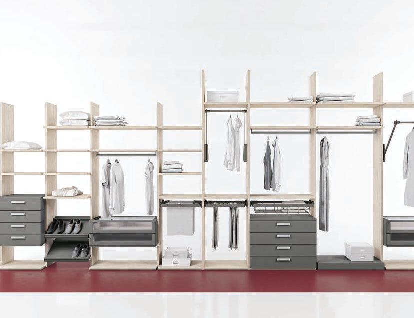 Bicloset propone in alternativa una modularità a fianco portante con le attrezzature funzionali specialistiche del “contenere”.