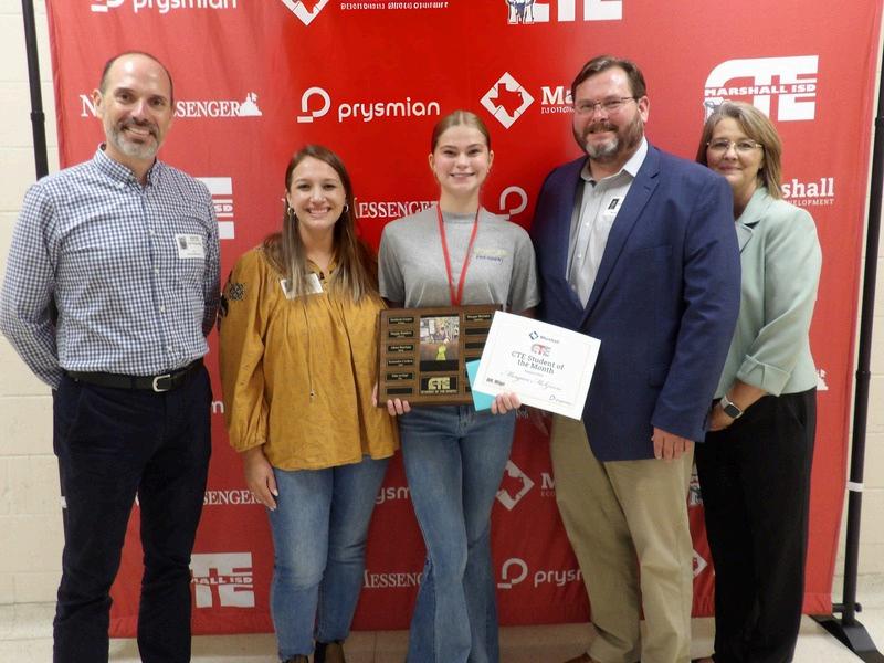 The CTE Student of the Month program began in 2023 as a partnership between Marshall ISD, Marshall Economic Development Corporation, the Marshall News Messenger, and Prysmian, the program’s title sponsor and a longtime supporter of workforce and education initiatives in the region. Since its launch, the program has spotlighted students from diverse CTE pathways, such as health science, welding, AV production, education, culinary arts, and more. By celebrating these students and sharing their stories, the program helps raise awareness about the value of Career & Technology Education in preparing a skilled and adaptable workforce for Marshall’s future.