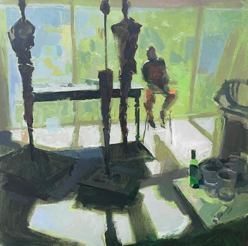 Winter’s Work; Russell Woodham at rest while laying a hazel hedge in the Dorset Style” oil on canvas (121.5 x 151cm) Toby Wiggins RP