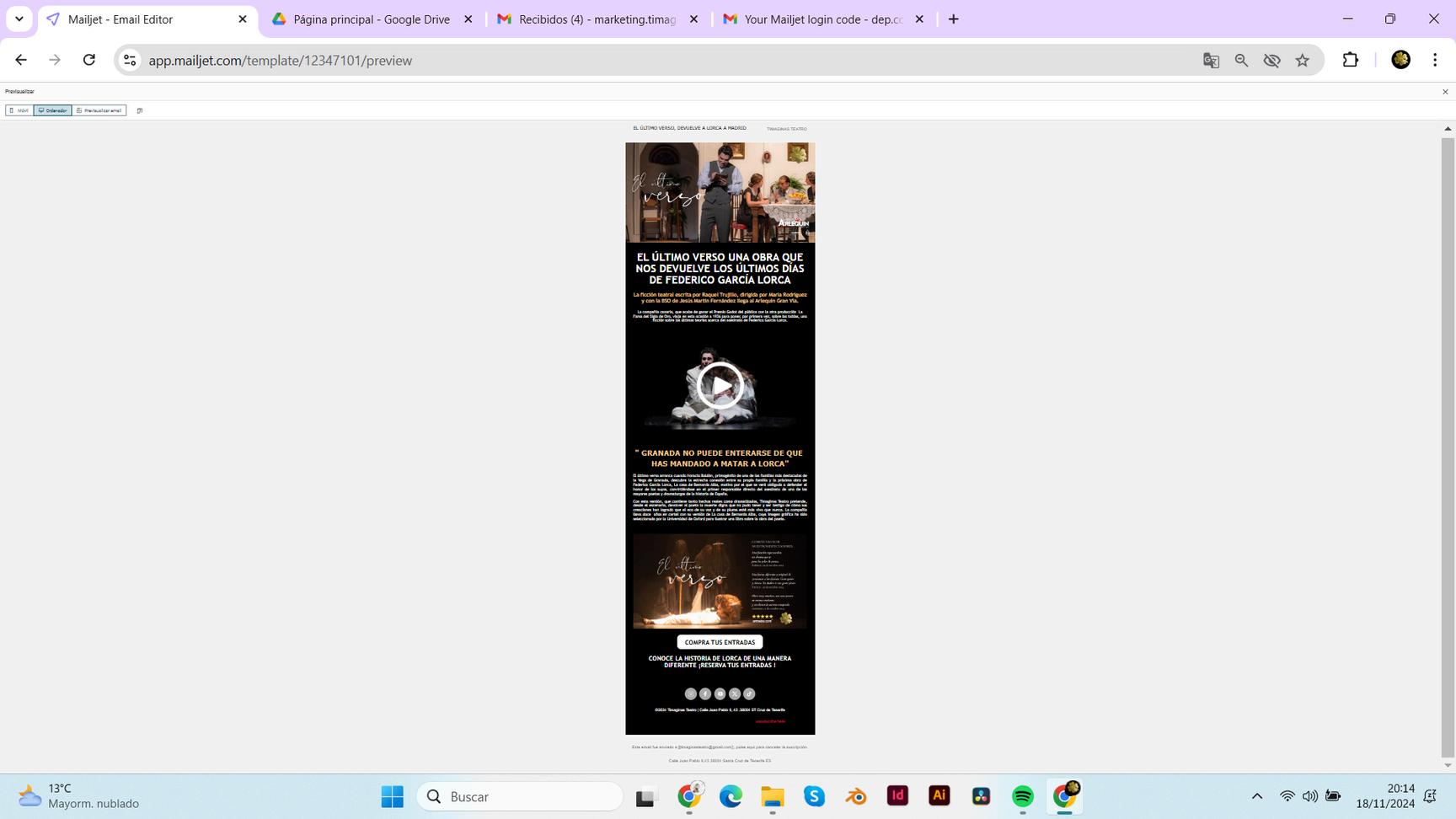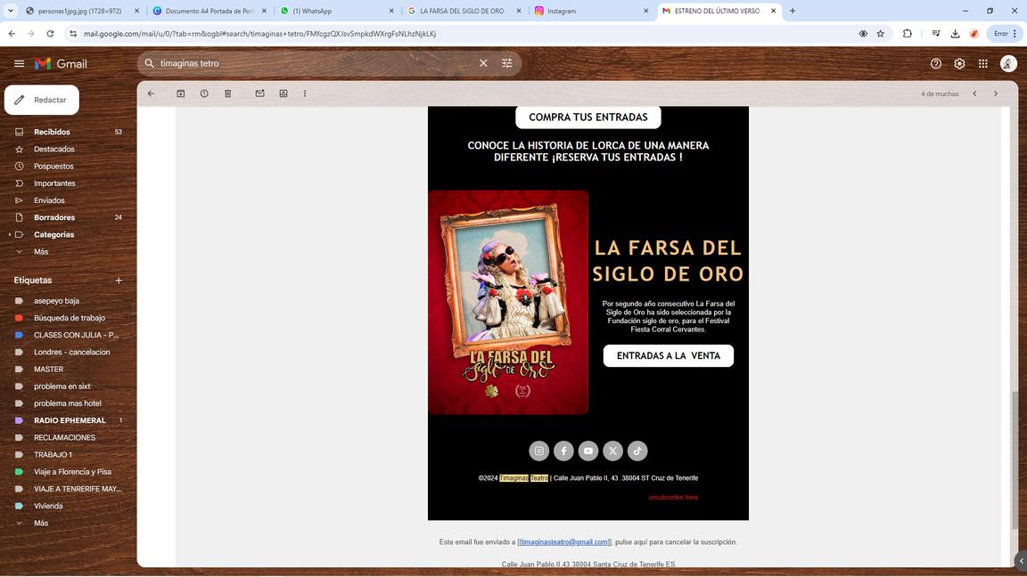 Durante los últimos dos años y medio, he trabajado con la compañía Timagin as Teatro Sin embargo, la campaña más destacada en la que participé fue la realizada para la segunda temporada de La Farsa del Siglo de Oro. Esta obra, que llegó a Madrid desde Canarias, ya contaba con un cartel previo, pero era necesario dotarla de una nueva imagen que captara la atención en la capital madrileña. Por ello, llevamos a cabo un rebranding y diseñamos una campaña publicitaria capaz de destacar en medio de la sobreinformación urbana Se buscaba una imagen impactante, directa y memorable para el espectador