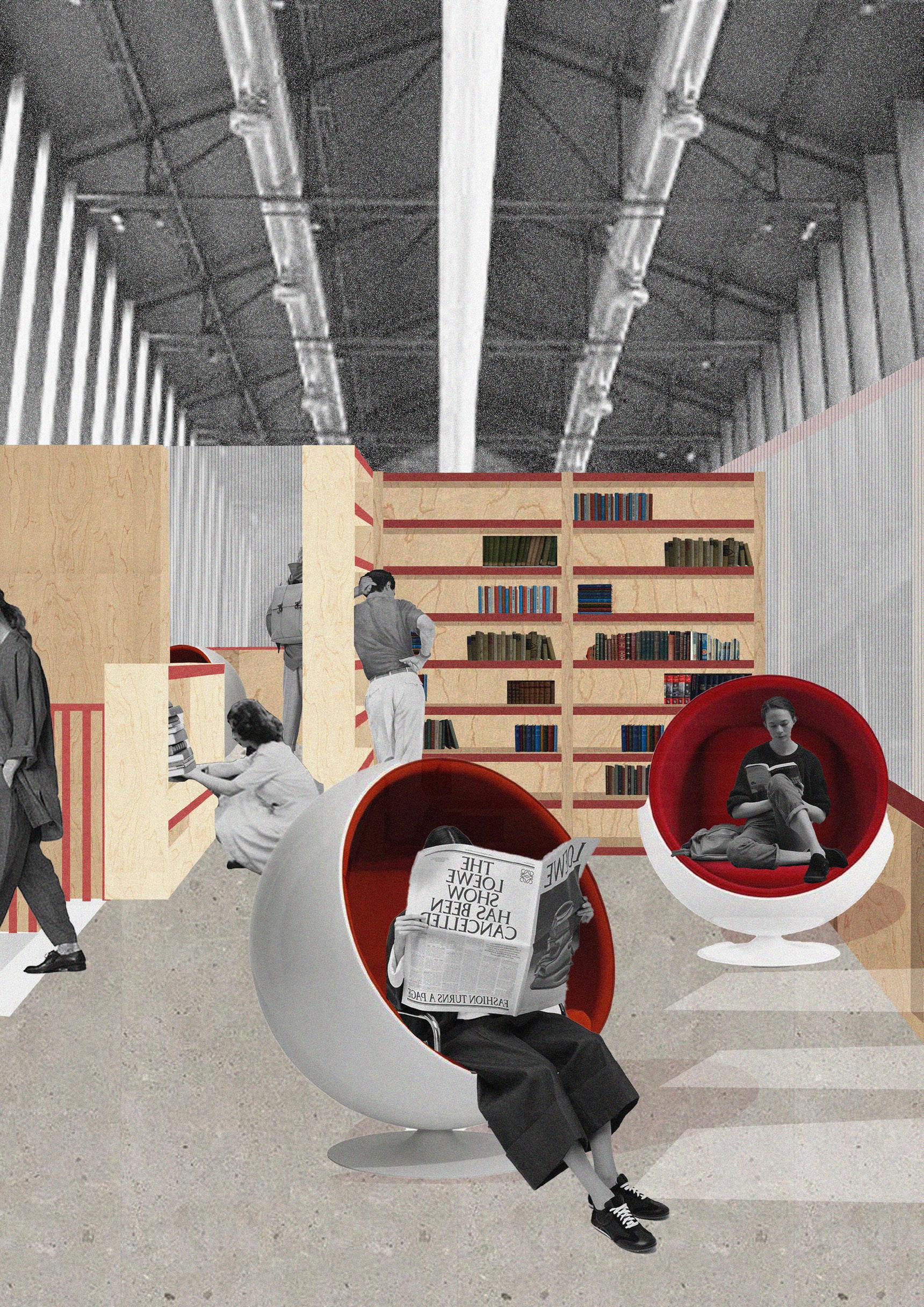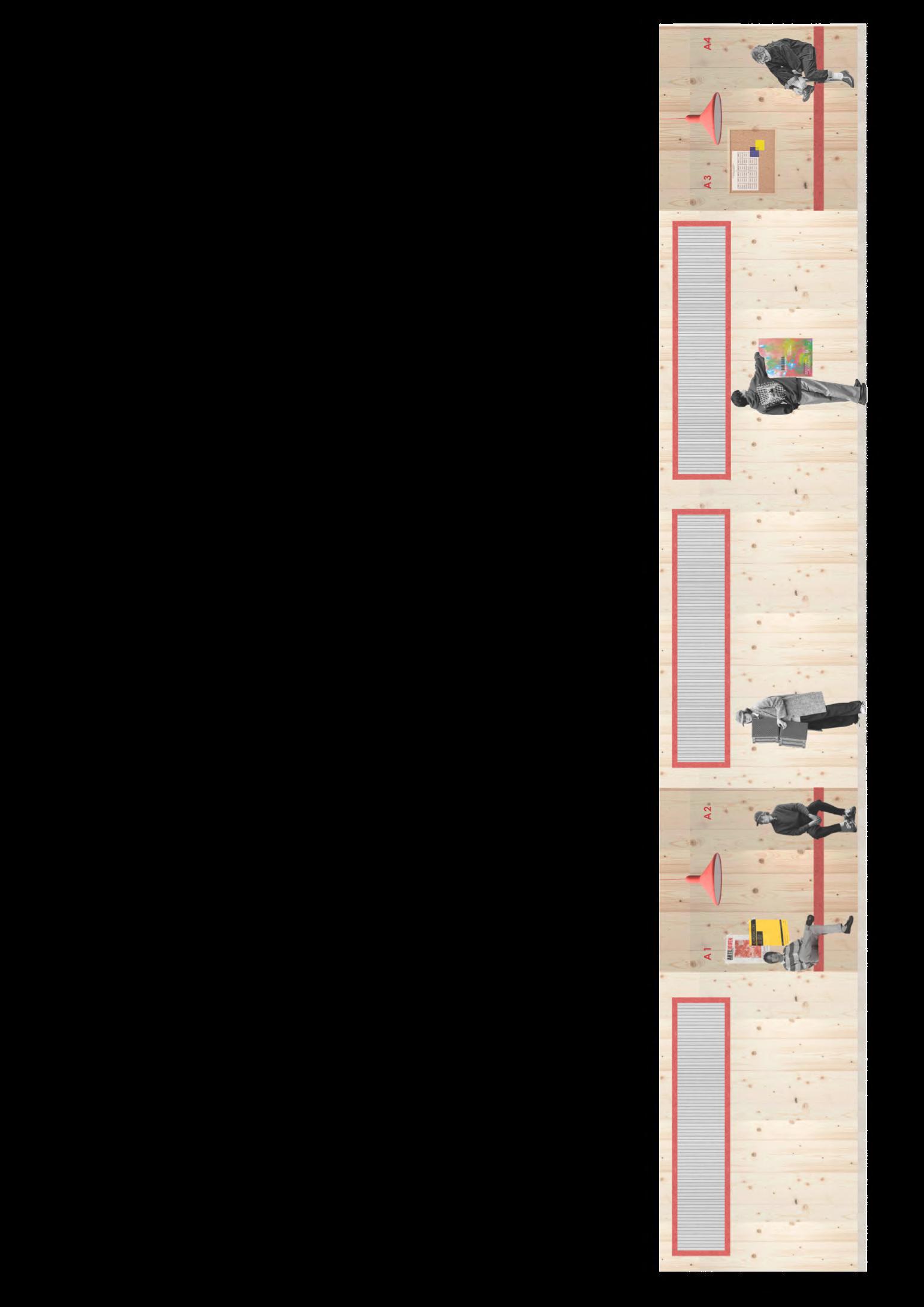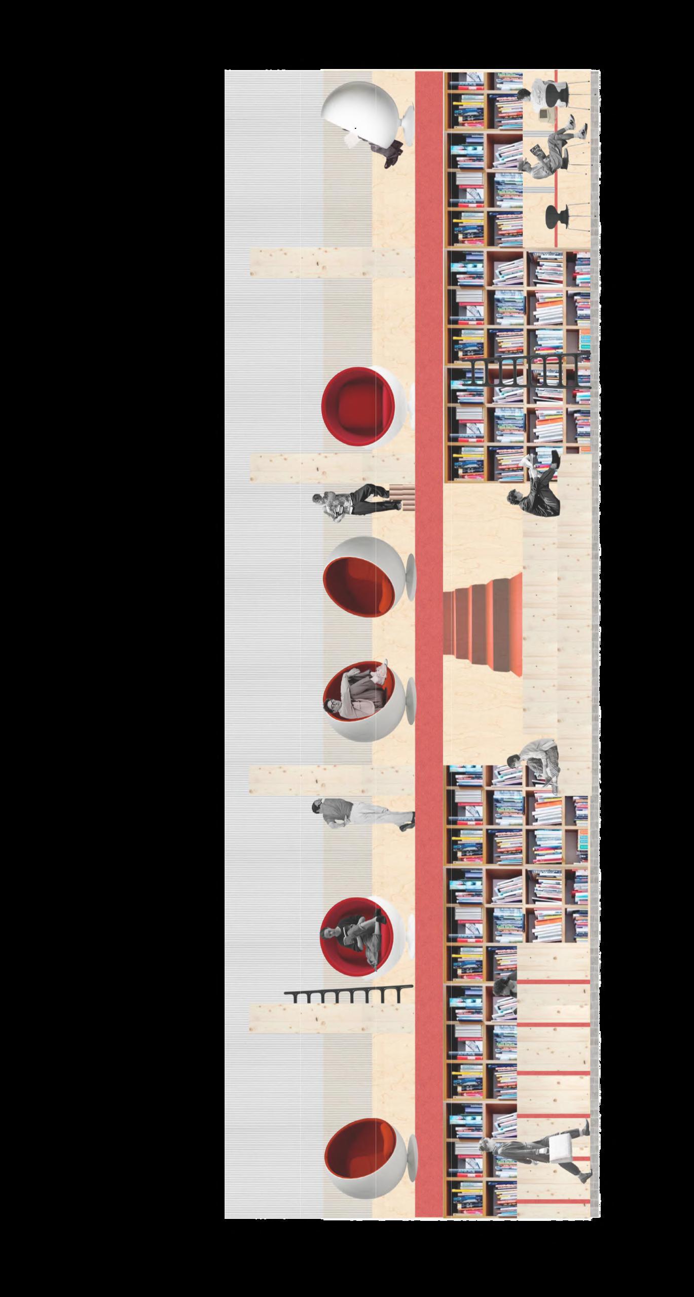ZONA A Zona intermedia, uno de los ensanches de vertebrae, en este caso es la entrada a la zona de los talleres, son dos zonas entrentadas, creando una conexion estre sus dos espacios de transición.