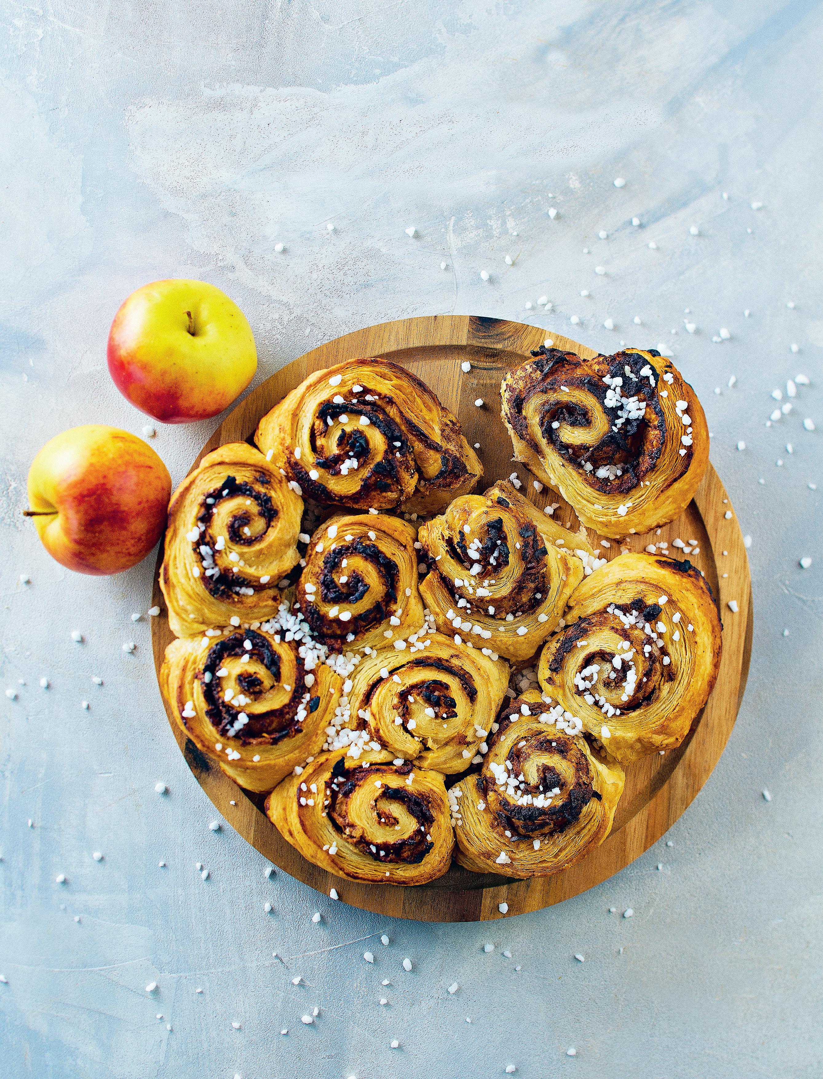4. Ripottele taikinalevyille omenaraaste, sokeri, kaneli ja kardemumma.