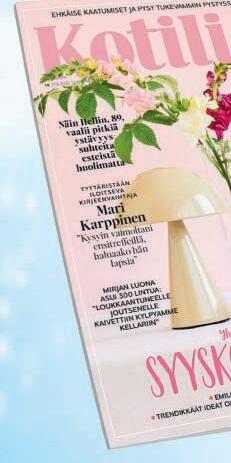 KIITOS TIINA IKOSEN jutusta huonekasvien hoidosta talvisin! Hyviä ja selkeitä neuvoja noudatettavaksi. Kuvitus aukeamalla 24–25 on mielestäni hieman sekava, kun pyöreitä kuvia on kolmea eri kokoa. Olenkohan jotenkin vanhanaikainen, kun ne eivät miellytä silmääni, vaan tulee tirkistely mieleeni.