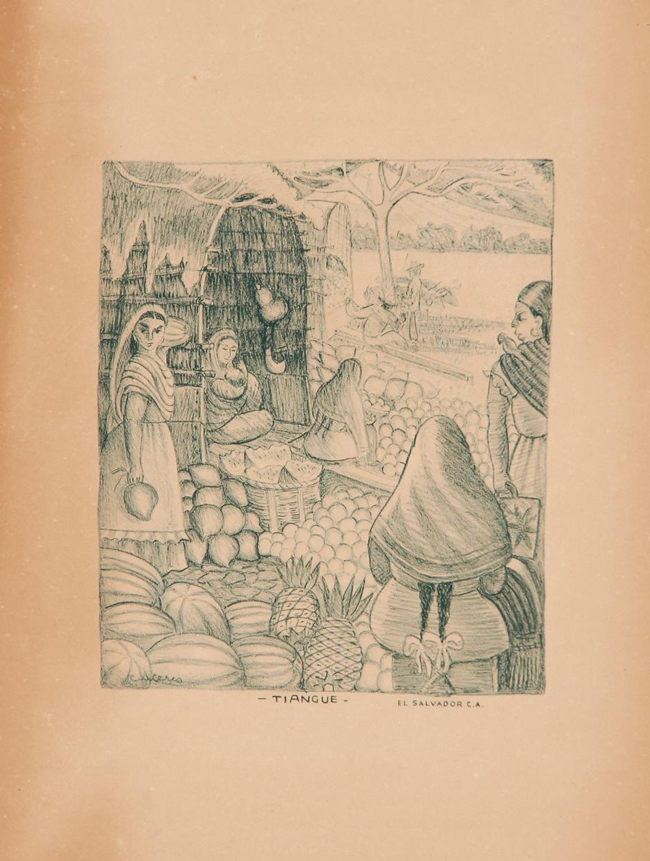 El tema del trabajo inicia con estampas de El Salvador en 1890, retomadas de los grabados que se encuentran en el libro “Geografía Elemental”, de Guillermo J. Dawson, que nos muestran a El Salvador de esos años. En la exhibición podemos encontrar representaciones de tres lugares específicos: Sonsonate, Santa Ana y San Salvador. La primera parte de la muestra se vincula a Sonsonate como un territorio directamente relacionado con la productividad y el comercio desde la época colonial, vinculado al puerto de Acajutla. Esa relevancia fue renovada en el siglo XIX con la colocación de las primeras líneas férreas de la República salvadoreña.