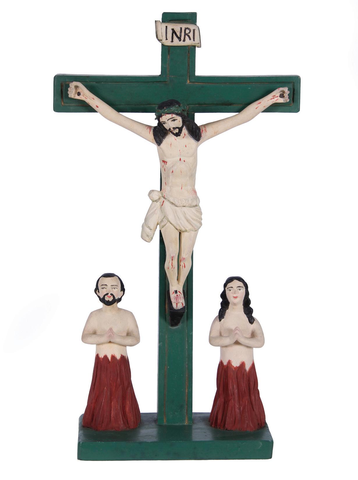 Este sincretismo más local se expresa en la obra de Juan Carlos Recinos (Fig. 90 y 91), quien, a partir de su vivencia en San Pedro Nonualco, reflexiona sobre cómo las tradiciones y los elementos culturales construyen comunidad, identidad, historia, cultura y arte.