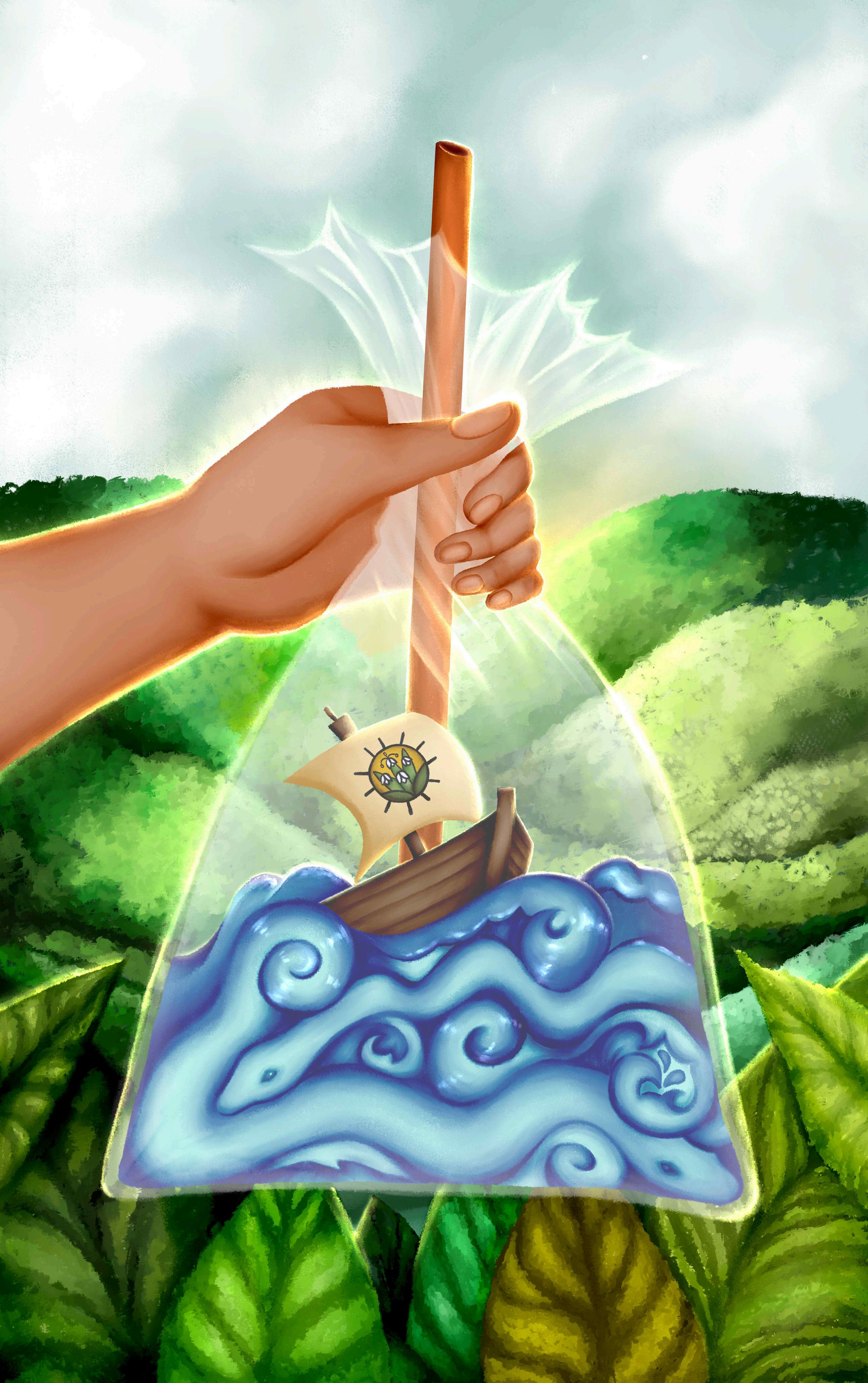 Dichos elementos se encuentran contenidos dentro de una bolsa plástica, ícono cotidiano representativo de la forma tradicional salvadoreña para disfrutar una bebida desde la infancia hasta la adultez, convirtiéndose así en un símbolo de la experiencia colectiva y la identidad compartida.