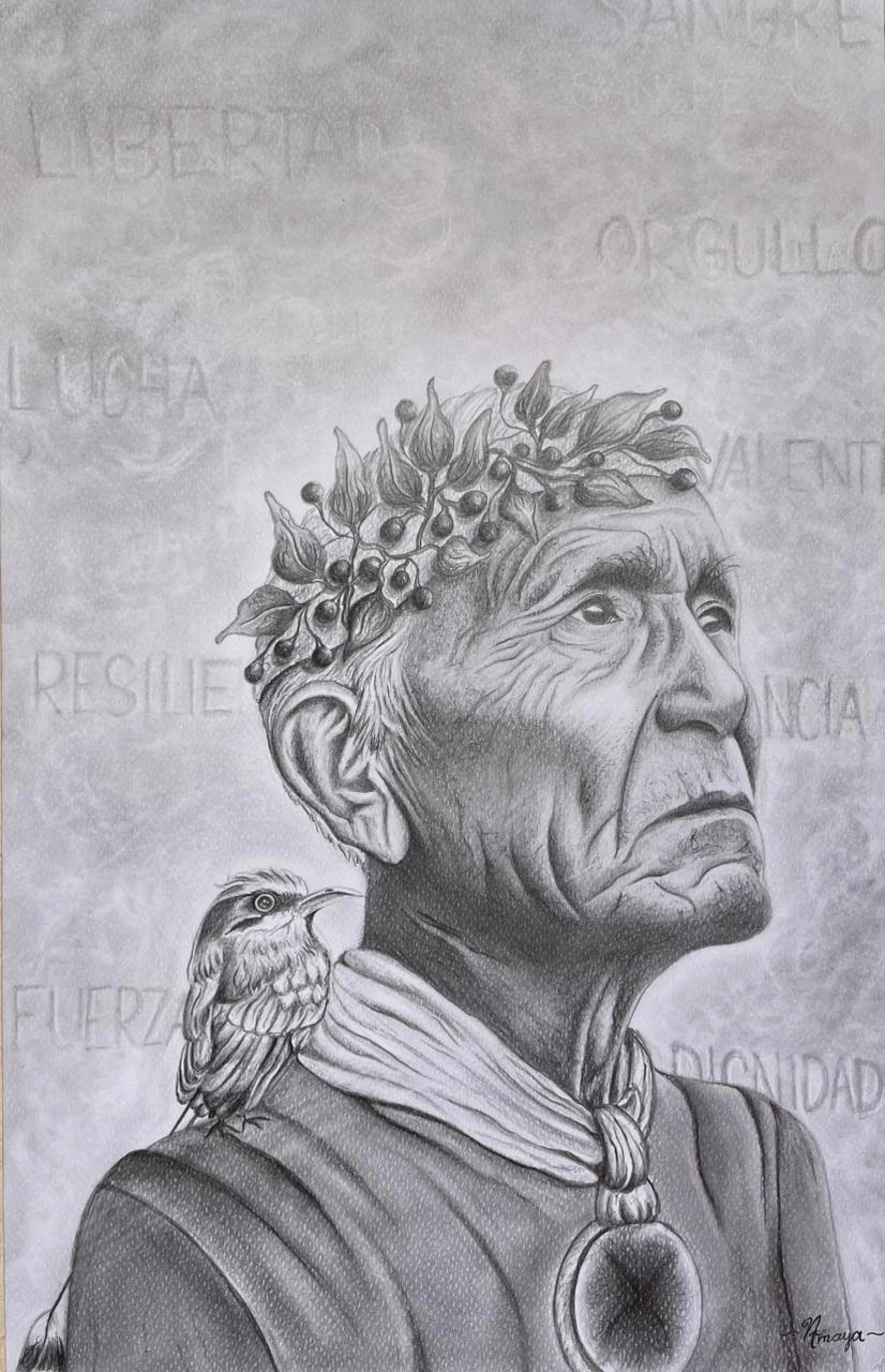 Su mirada firme, su corona de café y catorce hojas de laurel simbolizan la resistencia, el orgullo y la dignidad de un legado que no se apaga. El torogoz, posado como guardián, nos dice que la memoria aún canta sobre esta tierra, recordándonos que la herencia de nuestros pueblos originarios sigue latiendo bajo cada raíz de San Salvador.