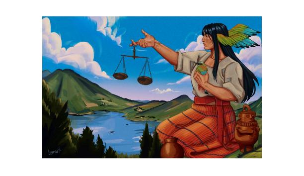 Nuestro país ha vivido épocas que han perturbado la paz; hemos vivido tiempos en donde se han burlado, silenciado y violentado. Considero que El Salvador representa la resiliencia, somos un pueblo que ha sido capaz de enfrentar las adversidades, de reconstruirse y levantarse de las caídas a lo largo de la historia. La balanza que sostiene simboliza la búsqueda constante de justicia y equilibrio. Los platillos se inclinan, recordándonos que en la historia de nuestro país han coexistido el dolor y la esperanza, la injusticia y la dignidad, pero que en ese vaivén siempre persiste la capacidad de reconstruirse.