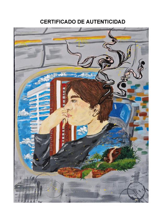 Mi obra representa la conexión entre las memorias del pasado y las del presente. Utilicé la técnica de acrílico sobre lienzo con colores bastante neutros para contrastar los sentimientos que quería transmitir al igual que algunos elementos de degradación y manchas bastante abstractas. El edificio moderno simboliza el presente de san salvador creando un sentimiento bastante nostálgico comparándolo a como fue una vez la ciudad, la persona central de la pintura se muestra dentro de un avión observando desde la distancia.