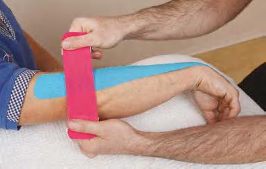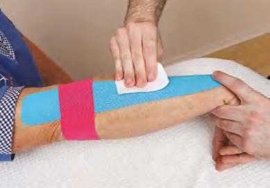 Figure 1.16 Kinesiology tape applied by rubbing the area to generate heat and activate the glue.