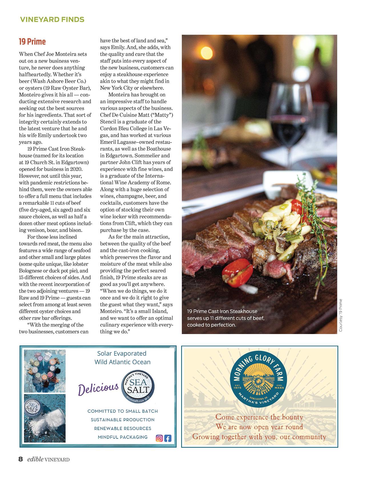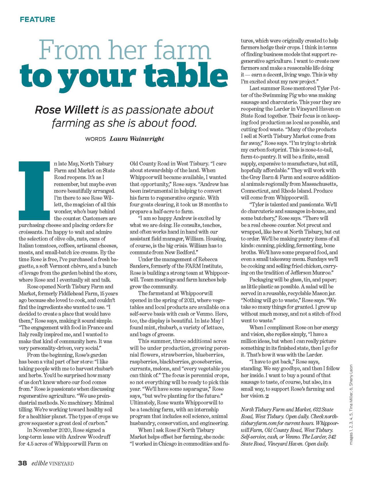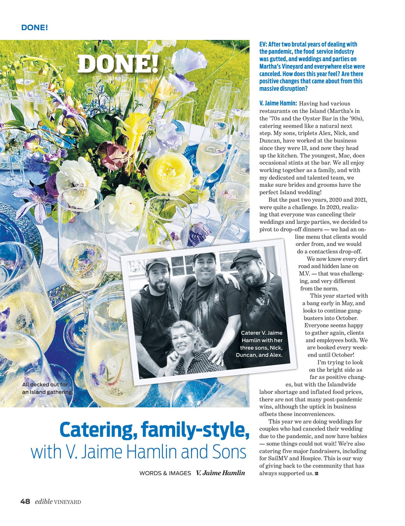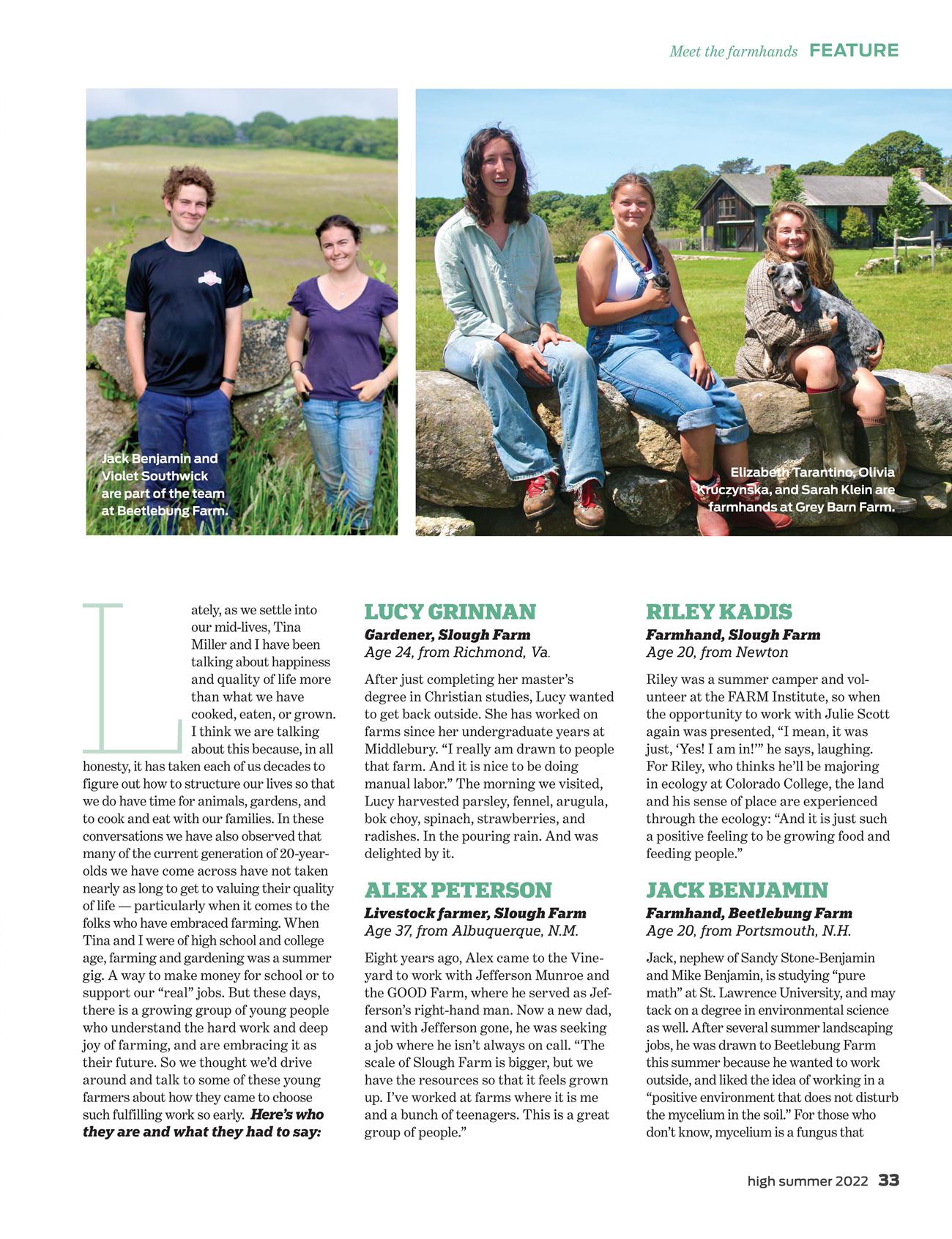This issue stole our (bleating) hearts, especially Amelia Smith’s story about the goat’s milk beauty products made by Emily Fischer at Flat Point Farm. Catherine Walthers’ story on World Central Kitchen and cooking for Ukrainian refugees gives us a bird’s-eye view of how an Island chef is doing her part to make the world a better place. Geoff Currier strolls down memory lane with the Giordano brothers, who still make pizza the way their grandparents did. And if you’re wondering what dreams lie in the minds of Island farmhands, look no further than Mollie Doyle’s introduction to young adults who come from all over to get their hands dirty. And it wouldn’t be a Vineyard summer without an old-fashioned clam boil. You’ll find that this simple In-Season summer recipe is sure to be a crowd pleaser. Let’s all fill our plates with the freshest local ingredients we can find and tip a glass to summer!