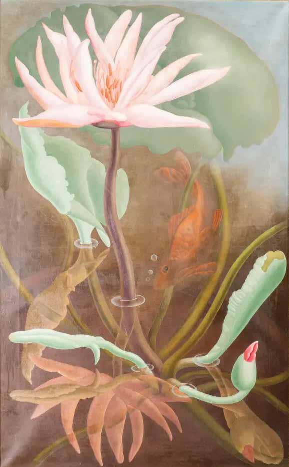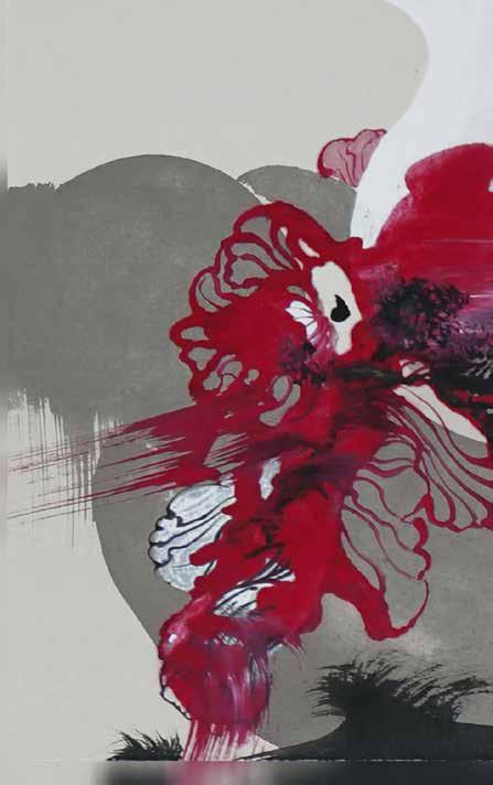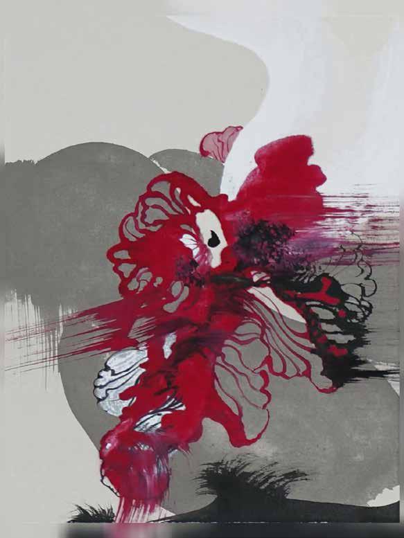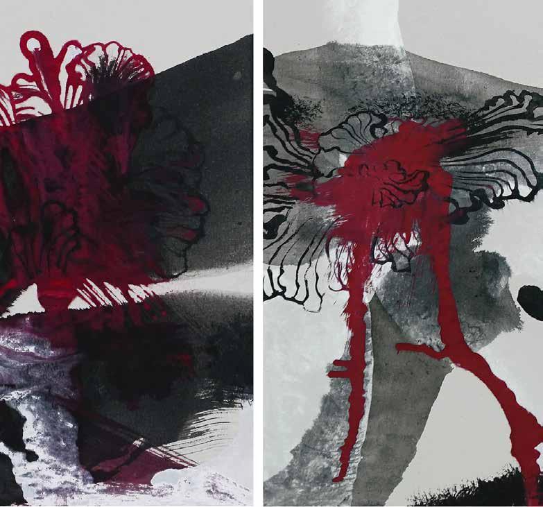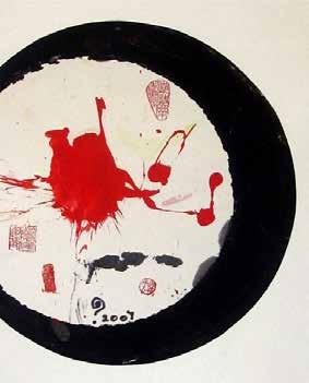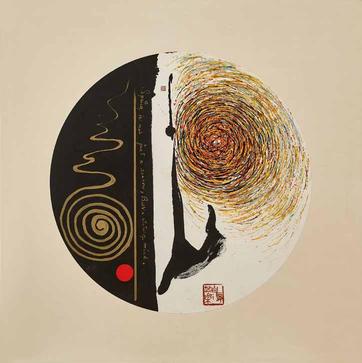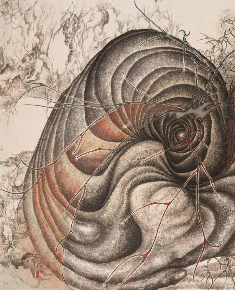 which was first used to inscribe stones during the Qin dynasty (221-206BCE).Although Chou started her career working with more traditional Chinese painting methods and styles through landscape and bird-and-flower paintings, she later experimented with various techniques and paints as she moved away from more conventional ink paintings and the popular Lingnan style.