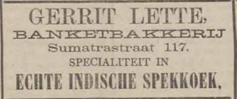 Indische Spekkoek or Real Indonesian Spekkoek (as advertised in ‘Het Koloniaal Weekblad (28 September 1905) : Orgaan der Vereeniging Oost en West’ or The Colonial Weekly (September 28, 1905): Organ of the Association East and West). One proposed history of ’Spekkoek’ sees it hailing from Indonesia, created by Dutch housewives, in Batavia, missing the spiced cakes and biscuits of Holland.
