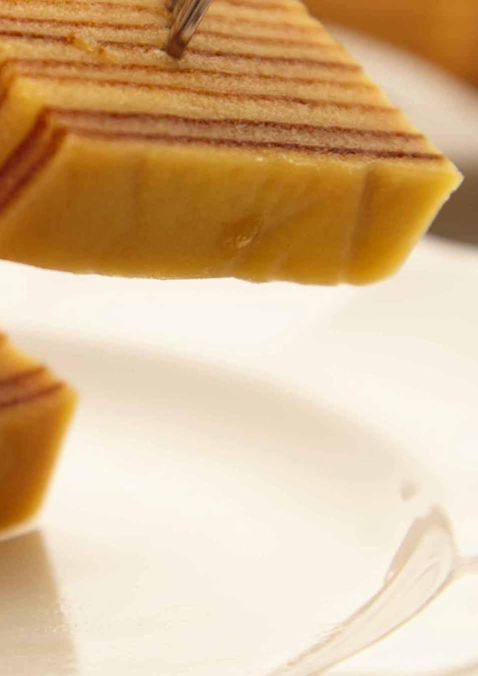 Research suggests that the early origins of a cake bearing similarities to Bebinca may be found in Europe, specifically within Germany and Italy (where the first recorded recipe appeared in a 1426 cookbook). In those early European recipes the Baumkuchen (Tree Cake) was a ‘spit’ cake, made on a spit over a fire. It was constructed by brushing even layers of batter and then rotating the spit around a heat source. Each layer was allowed to brown before a new layer of batter