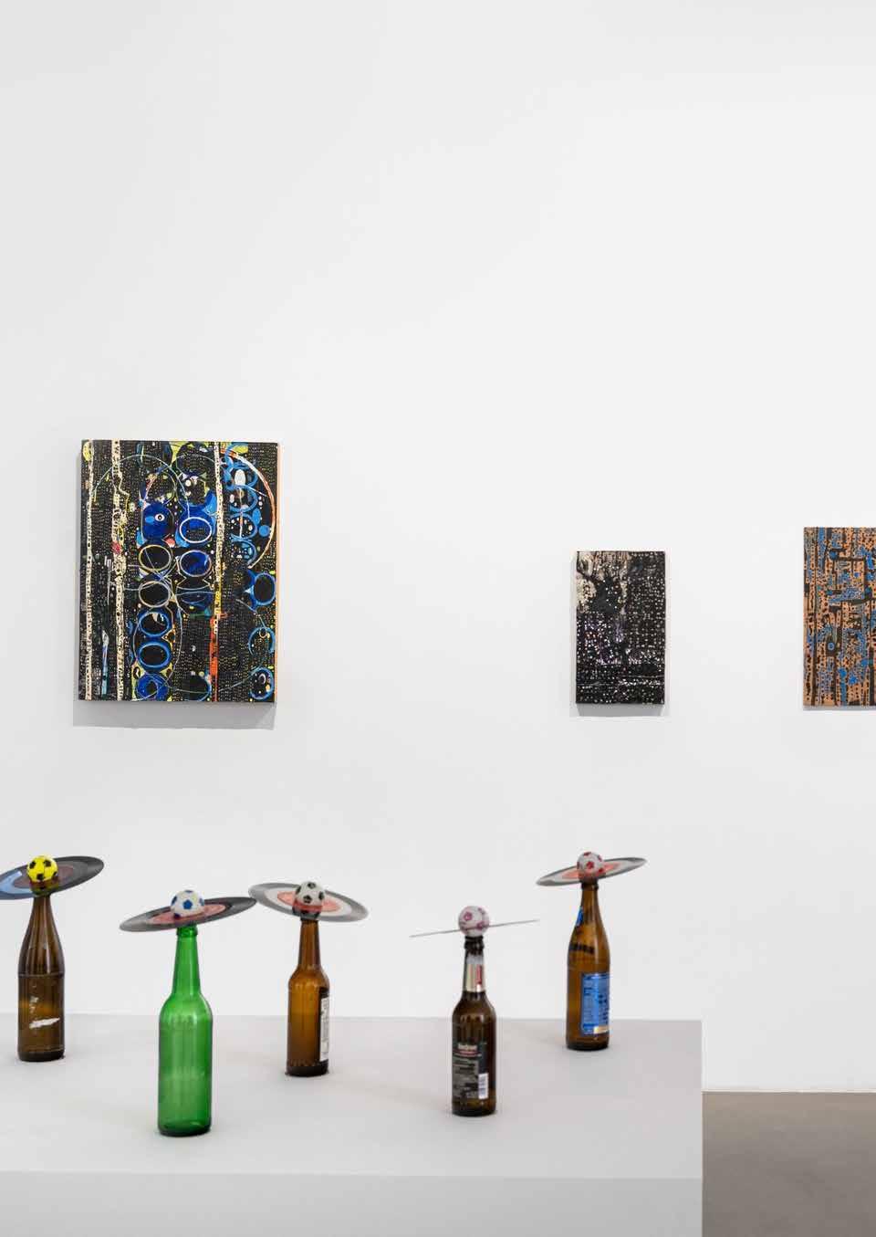 Htein Lin’s visual language is further explored in a selection of drawings from the 1990s and 2000s. Shown in public for the first time, they evidence his early interest in using everyday objects as painting tools and street life in Myanmar. In comparison, How do you find Birmingham? (2024), a new painting commissioned by Ikon, forms a vibrant panorama of the bustling city. Part of a wider series featuring cities including London, Belfast and Barcelona, its title references Htein Lin’s interpretation of the friendly question from locals when he moved to the UK and visited other foreign countries from 2006. It combines architectural icons such as Birmingham’s Central Library and Dhamma Talaka Peace Pagoda, the only Buddhist temple in Europe built in the traditional Burmese style.