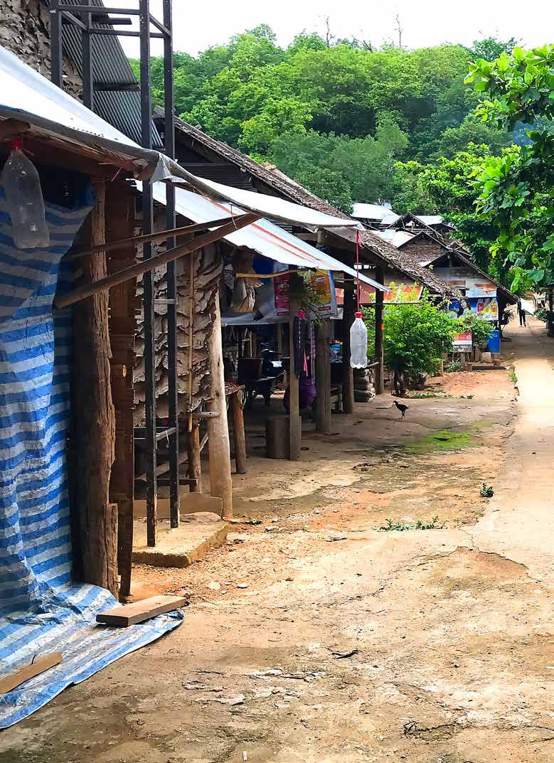 the village, Ma Cle immediately grabbed her guitar and began to play music and sing fully dressed in traditional ware with her especially long set of knee rings attracting the tourists to come to her home-front tourist stall and possibly pass over the others. The immediacy with which she prepared herself, suggests a conscious “performance” of identity tailored for the external tourist audience. One might question the authenticity of this experience but I do not. In our predominantly capitalistic world we all have our “performance” at a job or however we market our skills. She is using the tools she has available to her, her culture. This is survival in a Capitalist society. Below is a very short clip of Ma Cle’s performance for tourists. You can also get a glimpse of how she organizes her storefront home.
