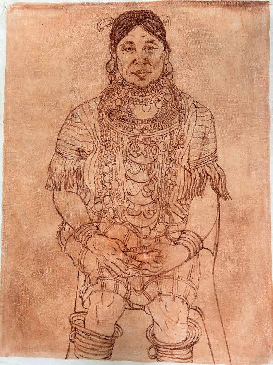 what they were saying but I distinctly had the impression that perhaps he had not seen her in the spotlight since their wedding day? I was very happy his response was laughter and not being uncomfortable or resistance to this shift in dynamics, seeing all the attention of the village on her. Portrait painting has a unique way of temporarily transforming social roles and often times placing women in roles of attention and admiration shifting social status. The portrait raises the status of the sitter, and perhaps shifts how the sitter sees themselves in relation to the Kayan community. It is not hard to notice the status and agency the women who is organizing the models has when everyone wants to be one who makes the money for sitting an hour. Every ethnic community I have worked in making portraits, the role of organizer created agency, yet the other women seemed very accommodating, waiting their turn. I felt no aggression towards her. If anything I saw the women being super supportive of her. This process of an artistic engagement oriented method exposes subtle power structures and community values in ways that traditional research might not capture.