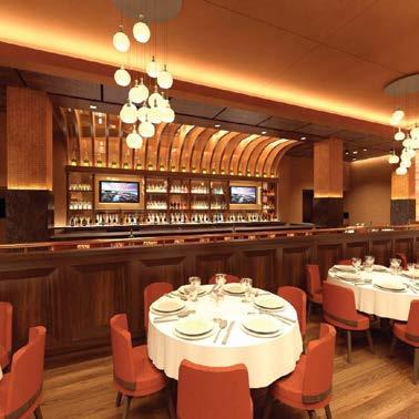 In the main area of the restaurant, one can enjoy a conversation with the other people at their table – without having to raise the tone of their voice, due to the carefully selected acoustical ceiling that goes throughout! And also, diners will note the columns in the restaurant, whose bottom half is dressed with a thin sheet of lava rock, fabricated by the Grupo Porcelanosa in Spain - in honor of the famous Vesuvius volcano.