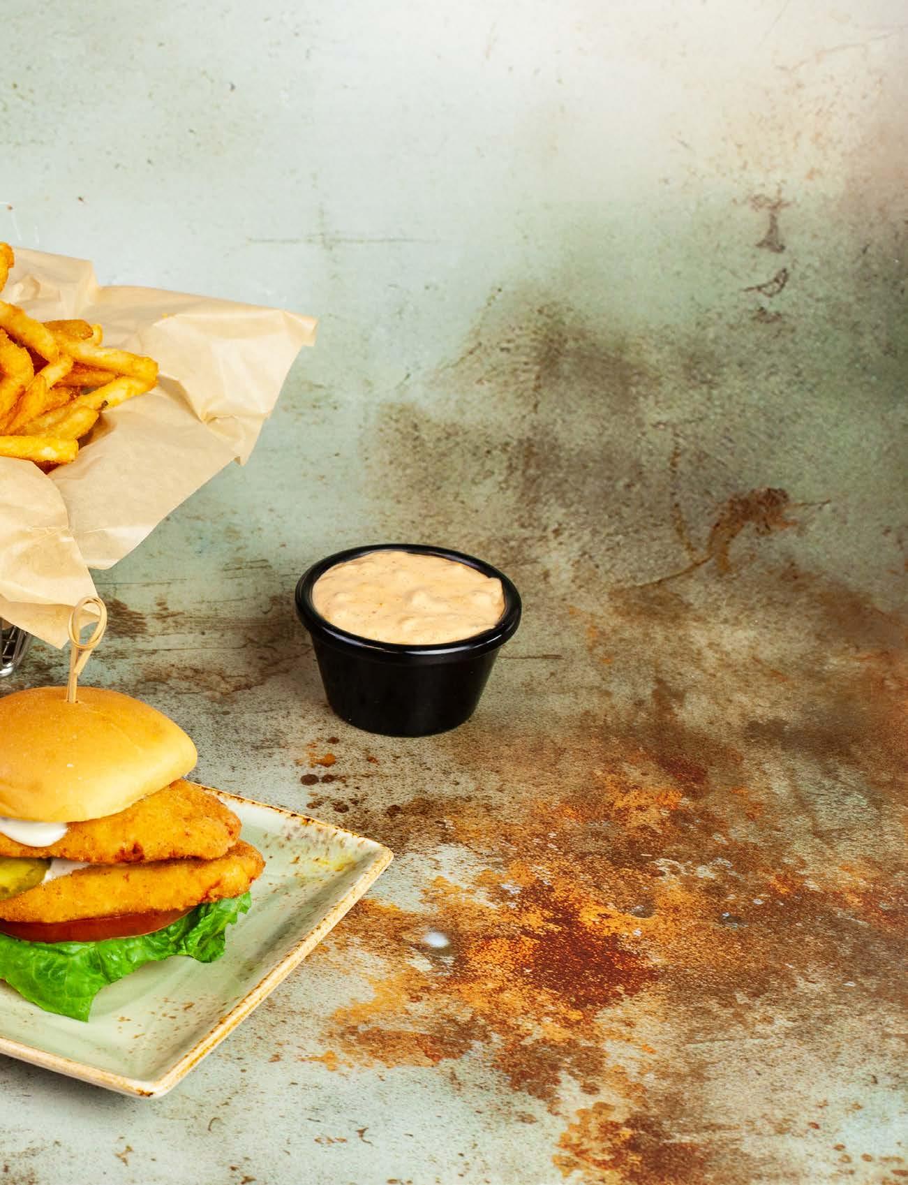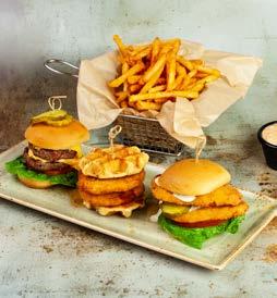 PREP | Build sandwiches. Two beef sliders with cheese, Rotella’s slider, lettuce, tomato and pickles. Two chicken sliders with Pillsbury waffle carrier and a drizzle of syrup. And another two chicken sliders with another Rotella’s slider, pickle ranch dressing, lettuce, tomato and pickles. Serve with fries and house sauce.