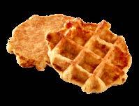 A Belgian style, maple flavored waffle with crisp pearl sugar. One side has the traditional waffle texture, while the other side is flat – perfect for sandwiches