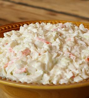 Cabbage & carrot based salad with a mayo and vinegar dressing.