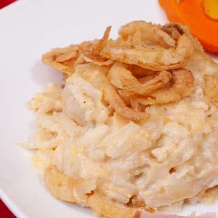 3. Layer remaining French Fried onions on a cookie sheet and brown in oven preheated to 425° for 5 minutes. Be careful not to overcook.