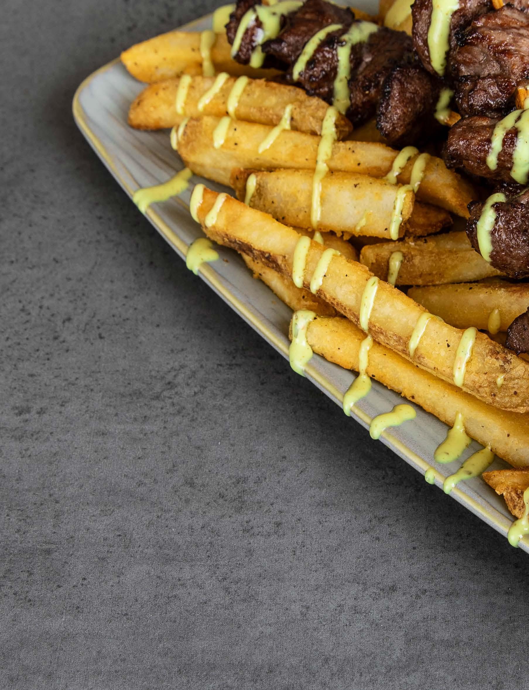 PREP | Place the cowboy candy onto kabob stick. Note: do not push the meat together, keep a small space in-between the pieces of meat. Cook in a preheated 350°F fryer approximately 60 – 90 seconds, internal temperature 135-145°F. Serve with seashore fries, drizzle with avocado ranch, and garnish with avocados, (optional).