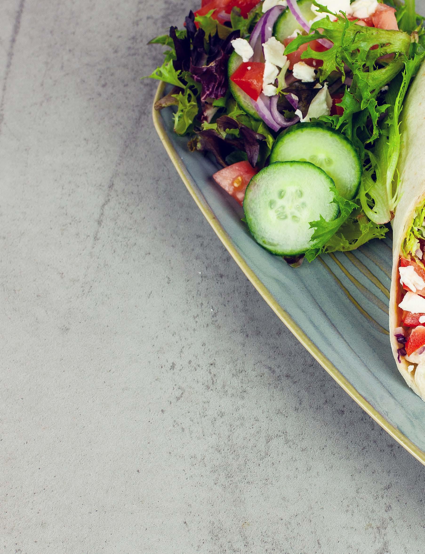 1 each Catallia Flour Tortilla – 12 in (949990), warmed 1-1/2 – 2 oz Kronos Classic Hummus (347690)