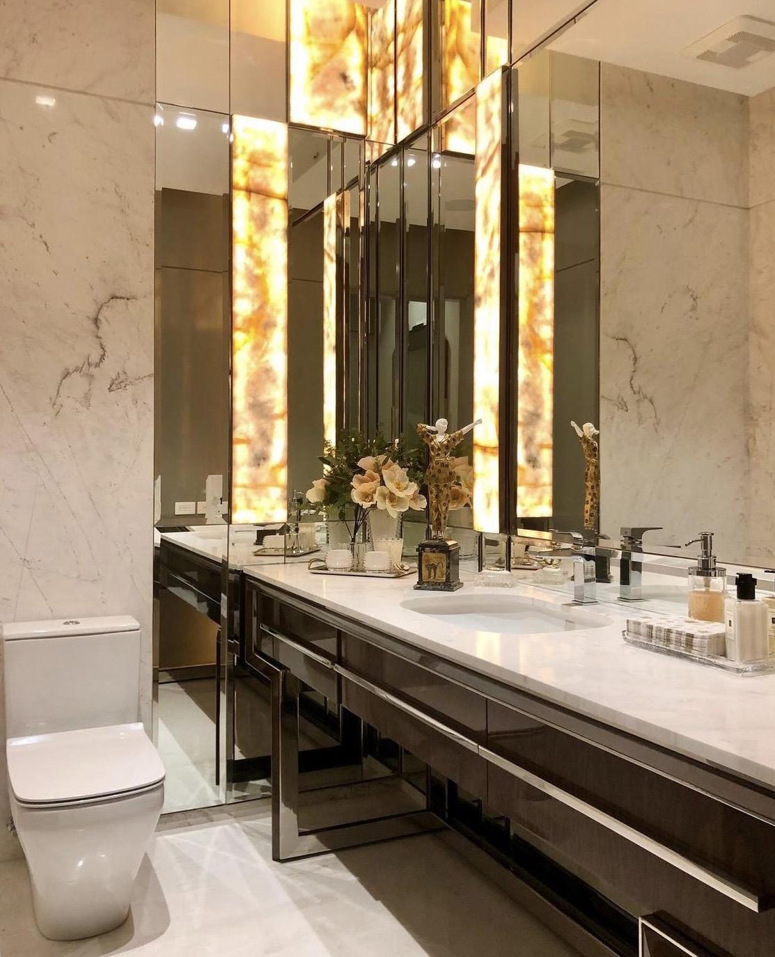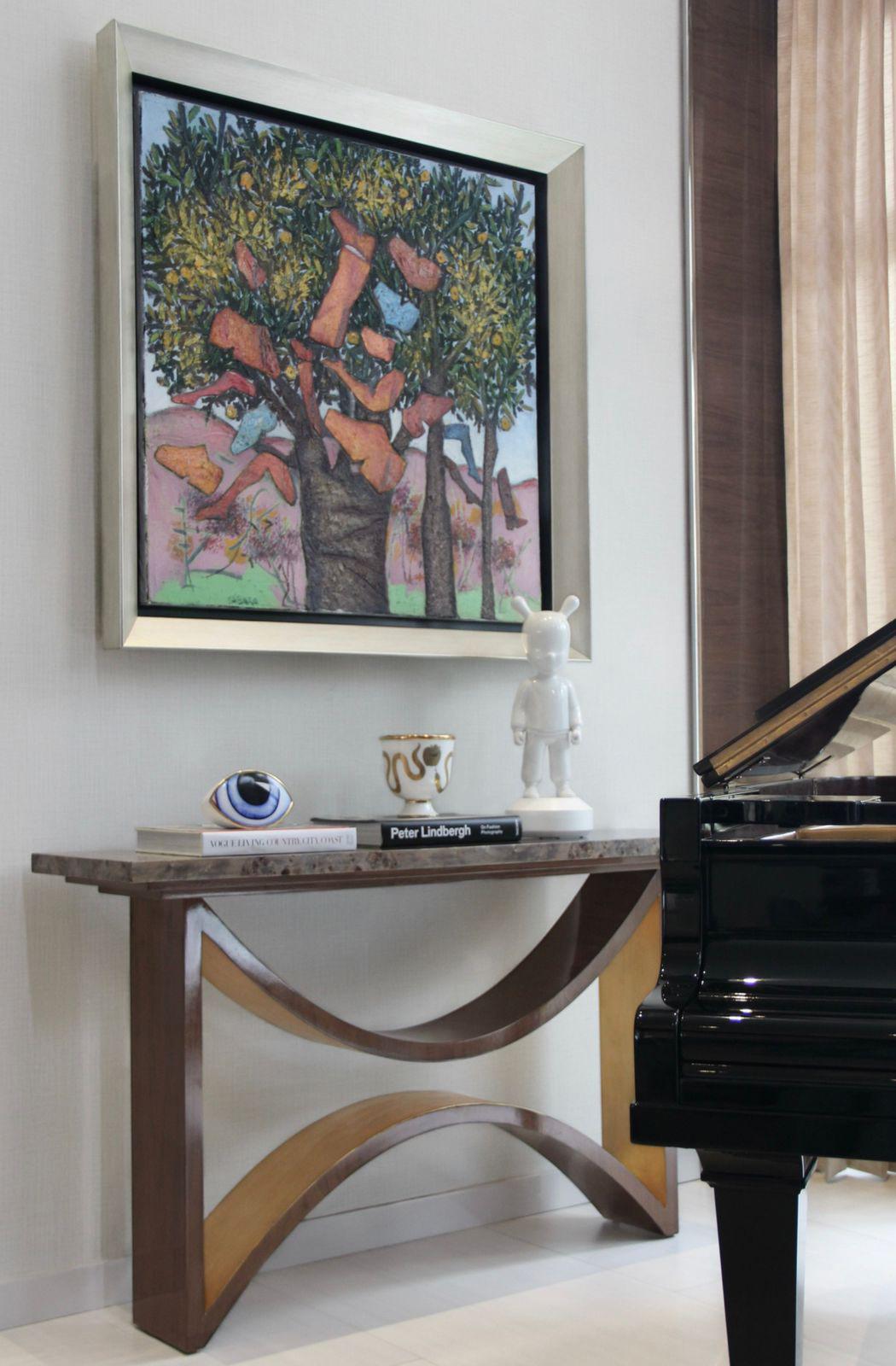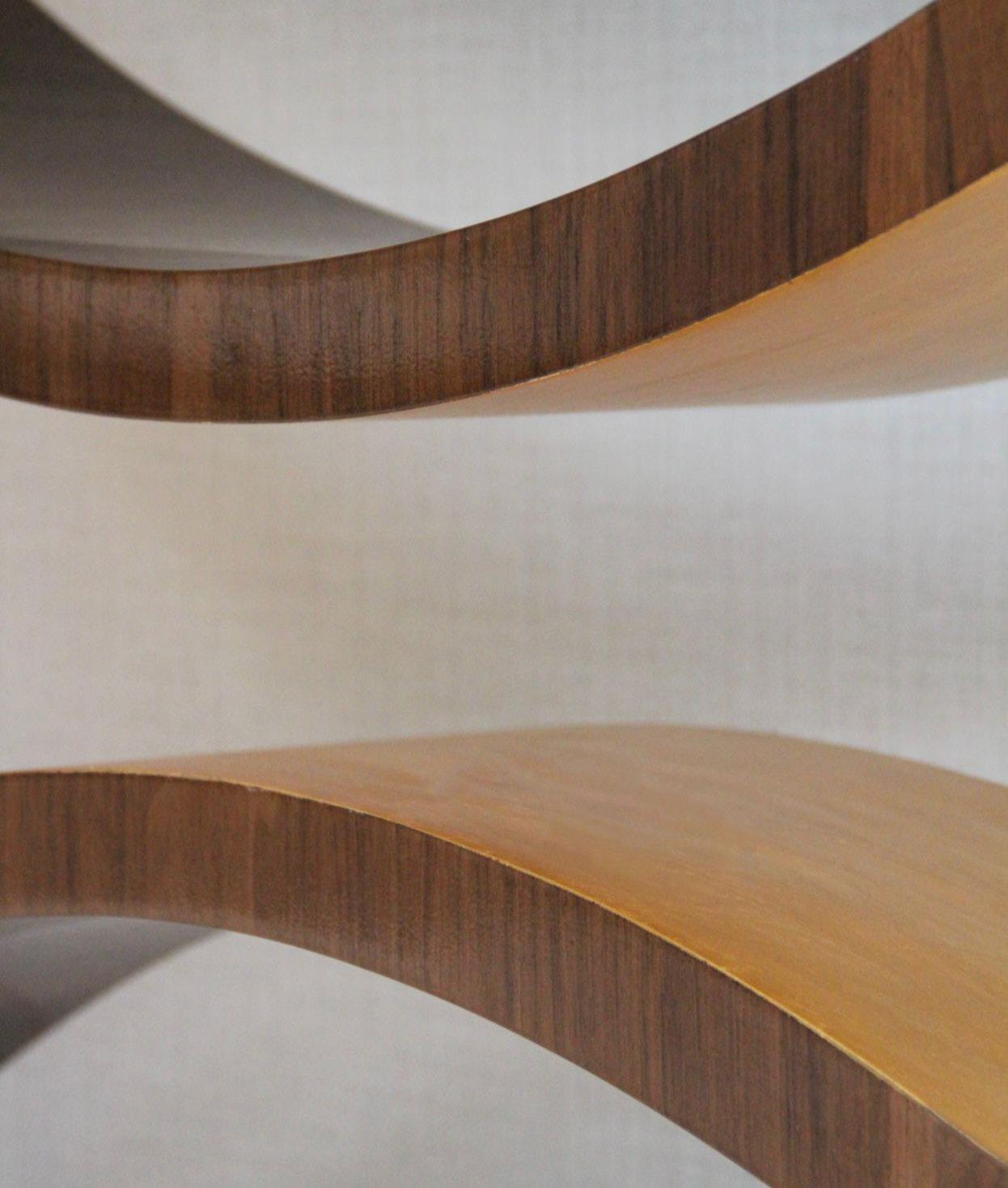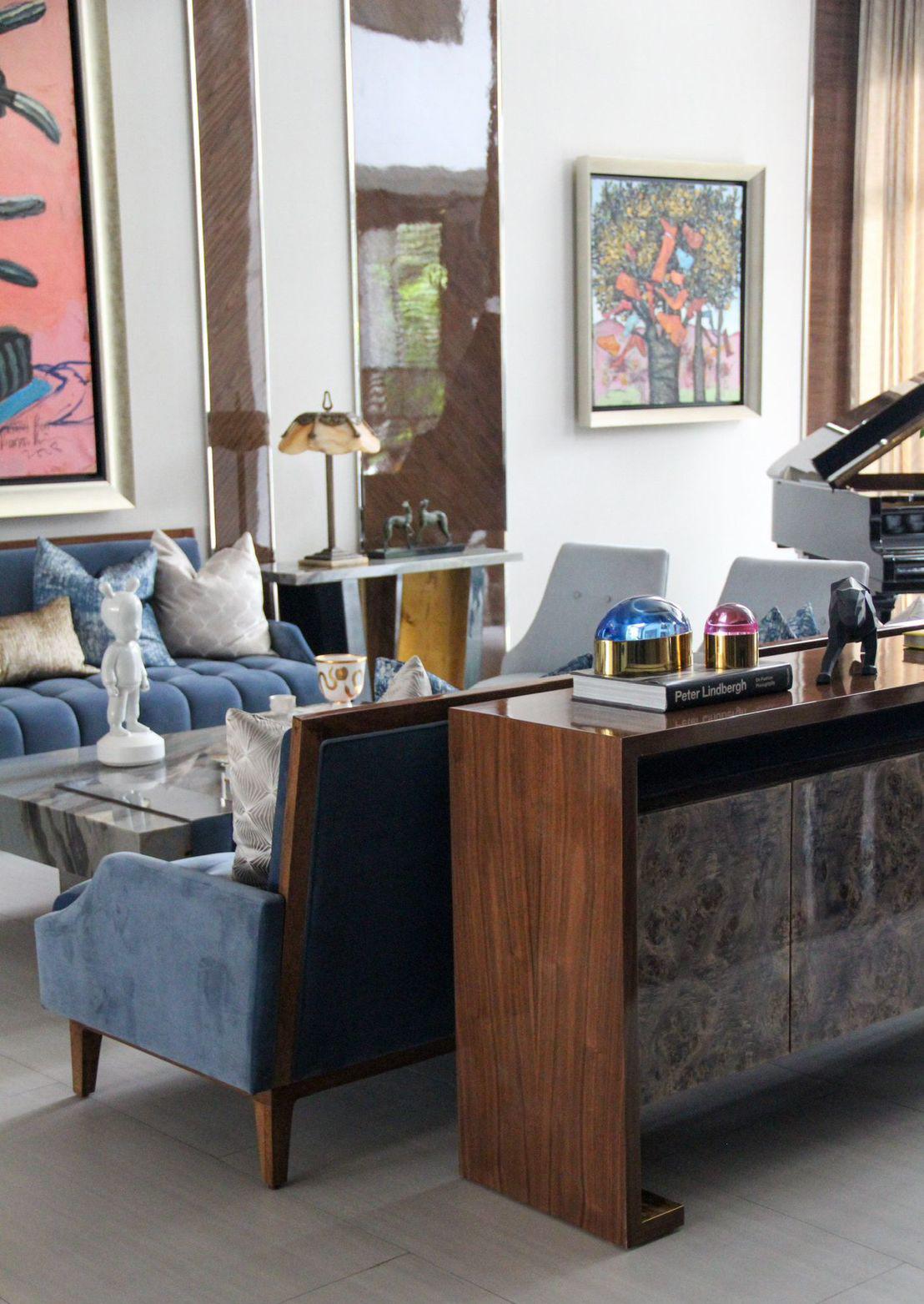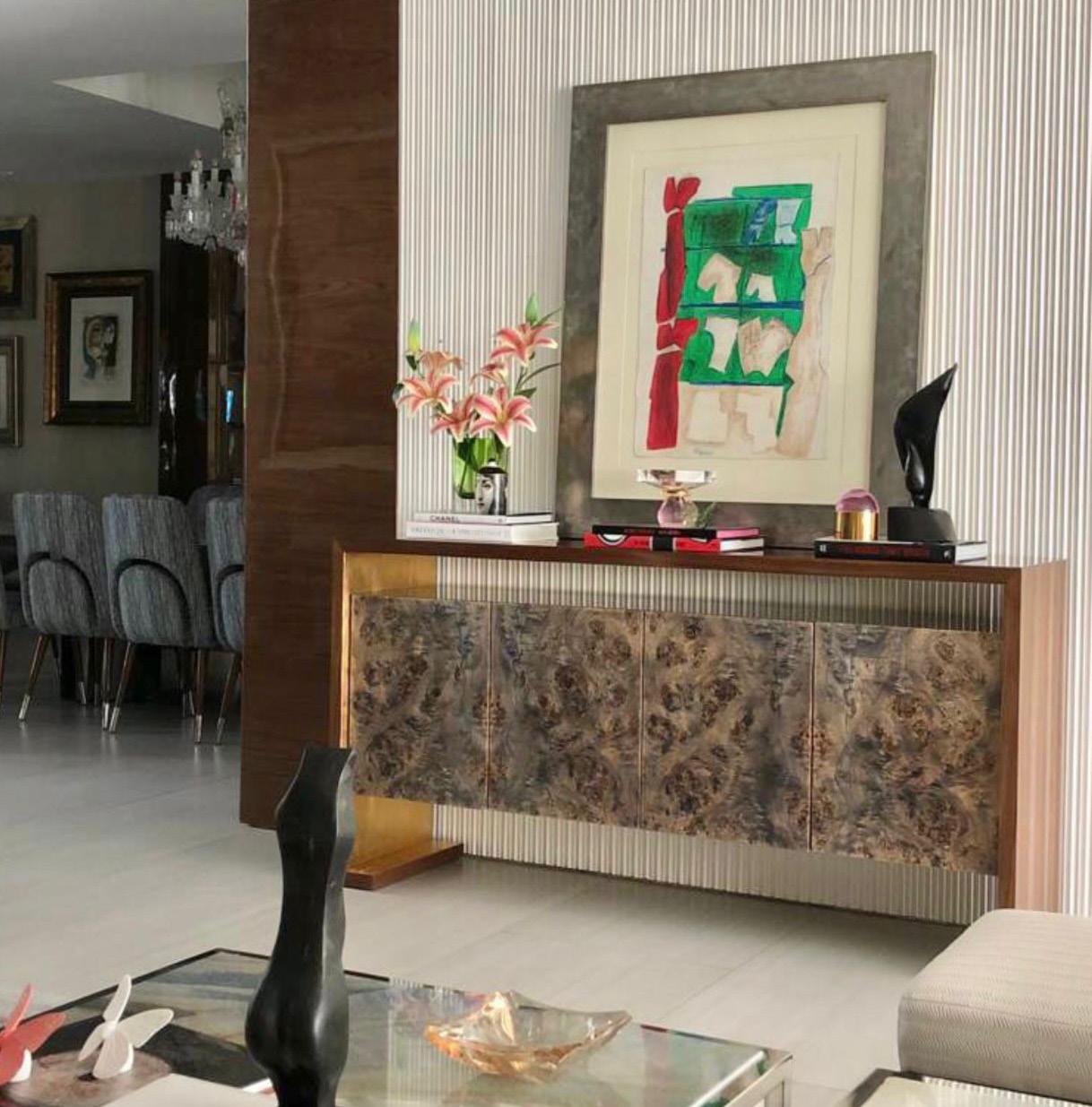 The furniture is characterized as contemporary. We proposed a design that is both enduring and avant-garde, with independent shapes that fulfill their objectives. For most of the pieces we used natural veneer for a timeless appeal, incorporated lighting to highlight decorative objects, and added steel details to balance the heaviness of the wood. Our team meticulously designs each piece of furniture and covering to exceed the client’s expectations.