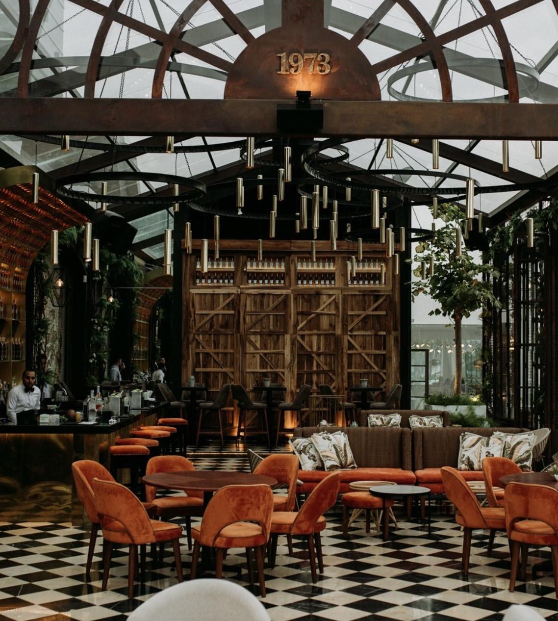 The concept we developed for this restaurant is centered on celebrating the significance of the past while making it relevant to the present. To achieve this vision, we designed and manufactured traditional furniture and complemented it with vibrant tapestries and contemporary pieces. The use of exposed brick on select walls contrasts beautifully with the chessboard patterned black and cream marble floors.