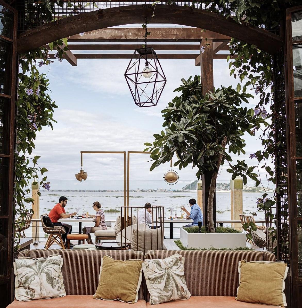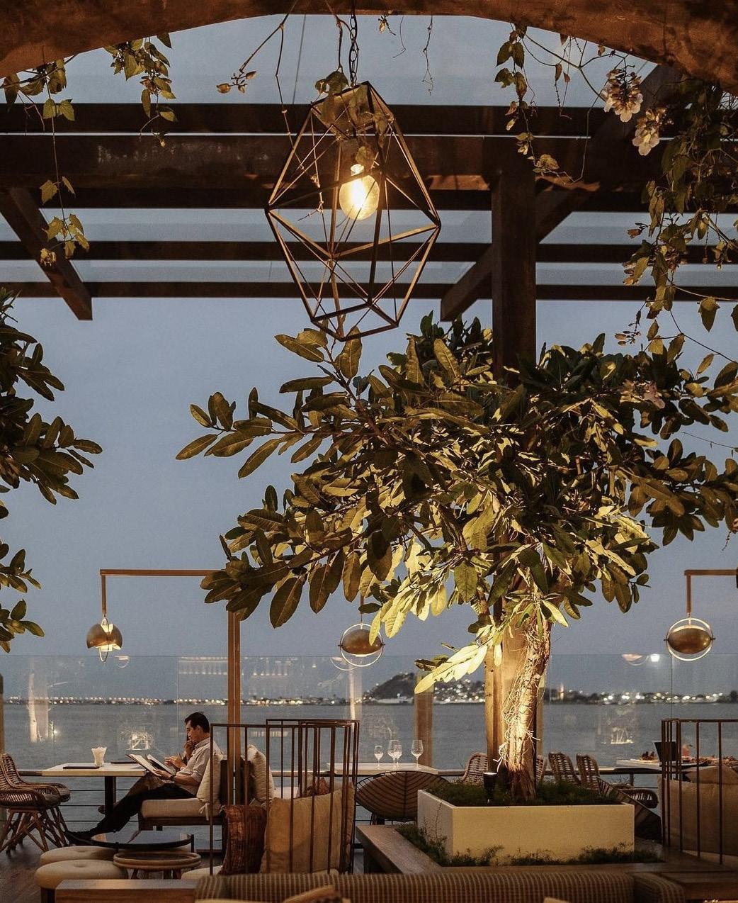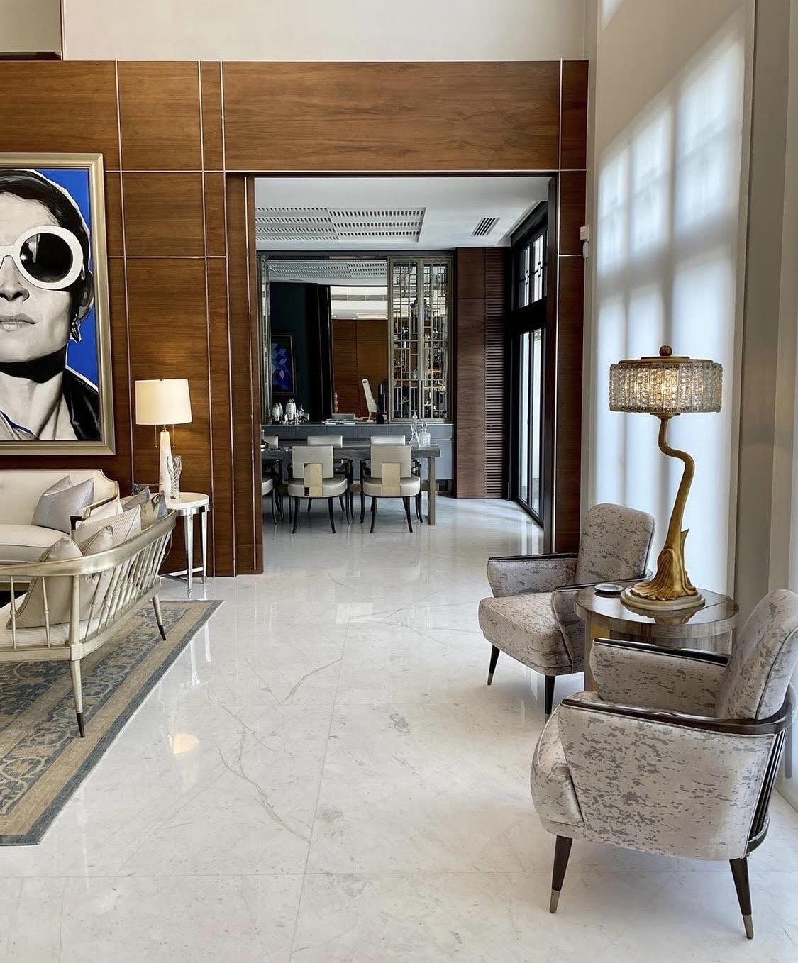 The incorporation of greenery evokes a colonial atmosphere, enhanced by expansive river views through floor-toceiling glass windows.