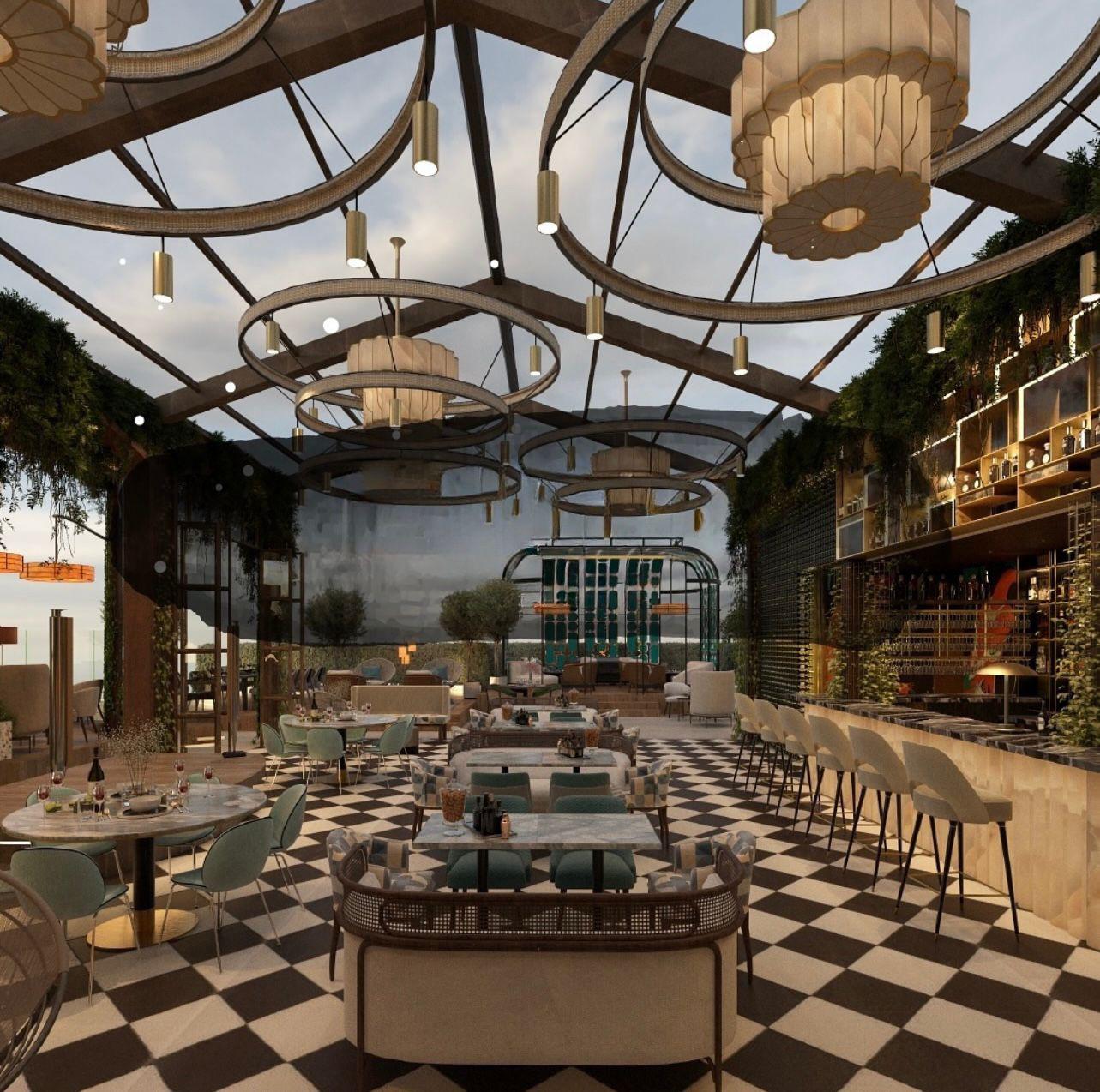 To enhance socialization, we designed lounge-style seating areas that promote interaction among diners in a more engaging and comfortable manner. The furniture in these spaces features geometric and modern lines, creating open, harmonious environments that blend seamlessly with the surrounding décor.