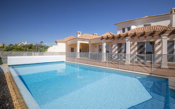Kinder auf ihre Kosten kommen, verfügt die Villa über ein separates Kinderbecken von 3x1,5 m mit nur 40 cm Tiefe. Die 1. Etage überzeugt mit einer offenen Lounge mit integrierter Küche und Esszimmer und der großen Fensterfront und Zugang zu 2 Balkonen mit Panoramablick.