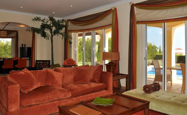 Die Eingangshalle geht direkt in den Wohnbereich über, der mit bequemen Sofas, Sat-TV, DVD und allem, was Sie zum Entspannen in den Abendstunden benötigen ausgestattet ist. Der offene Essbereich überzeugt mit großen Terrassentüren, die einfachen Zugang zum beheizten Pool und den Sonnenterrassen geben.