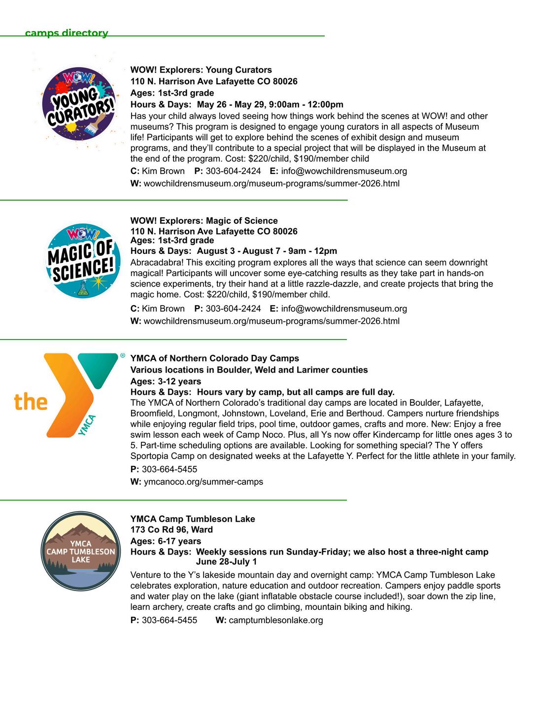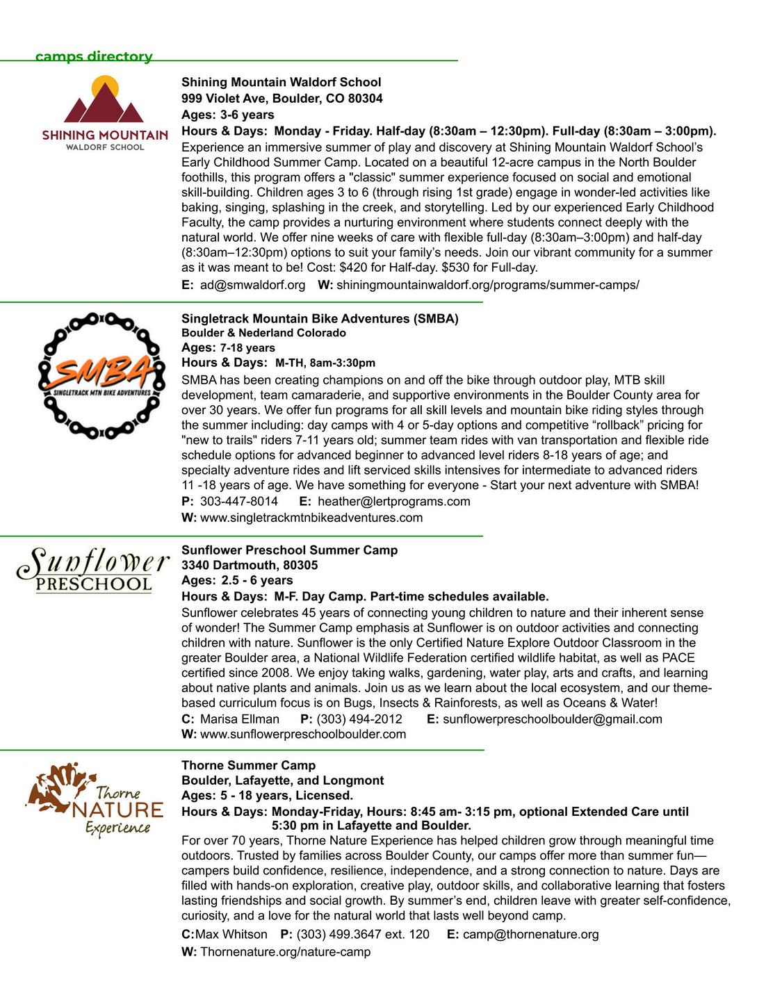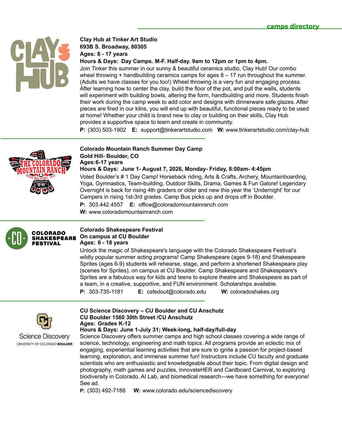 Whether kids are drawn to art, science, sports, animals, or big outdoor adventures, this is the go-to resource for planning summer in Boulder County Start bookmarking favorites now, because spots fill quickly