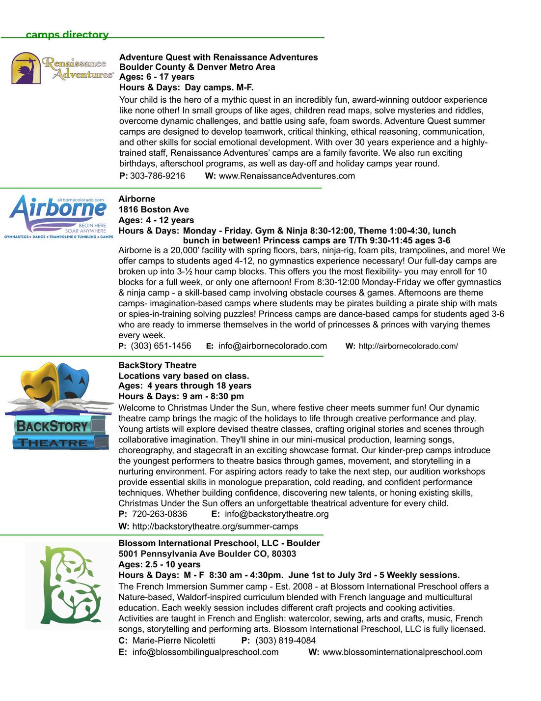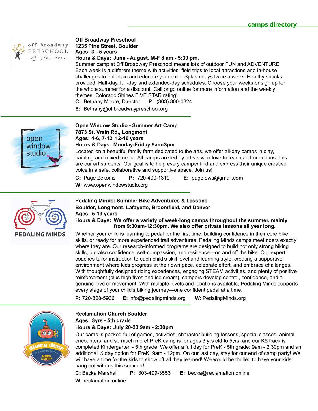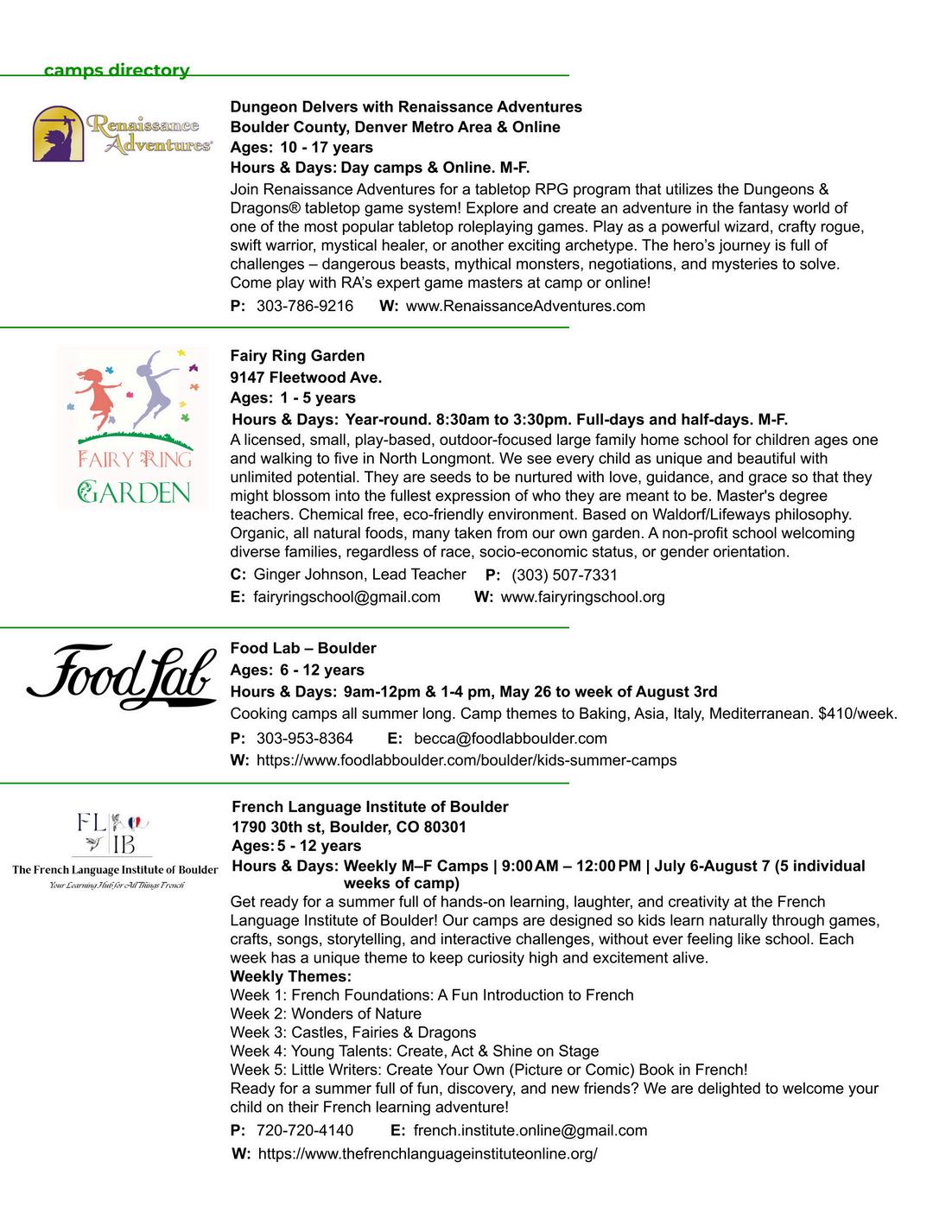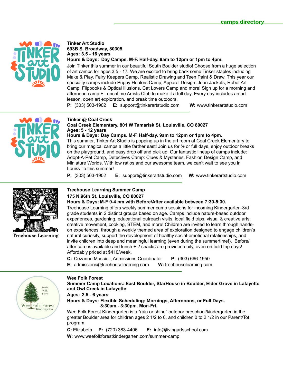 Whether kids are drawn to art, science, sports, animals, or big outdoor adventures, this is the go-to resource for planning summer in Boulder County Start bookmarking favorites now, because spots fill quickly