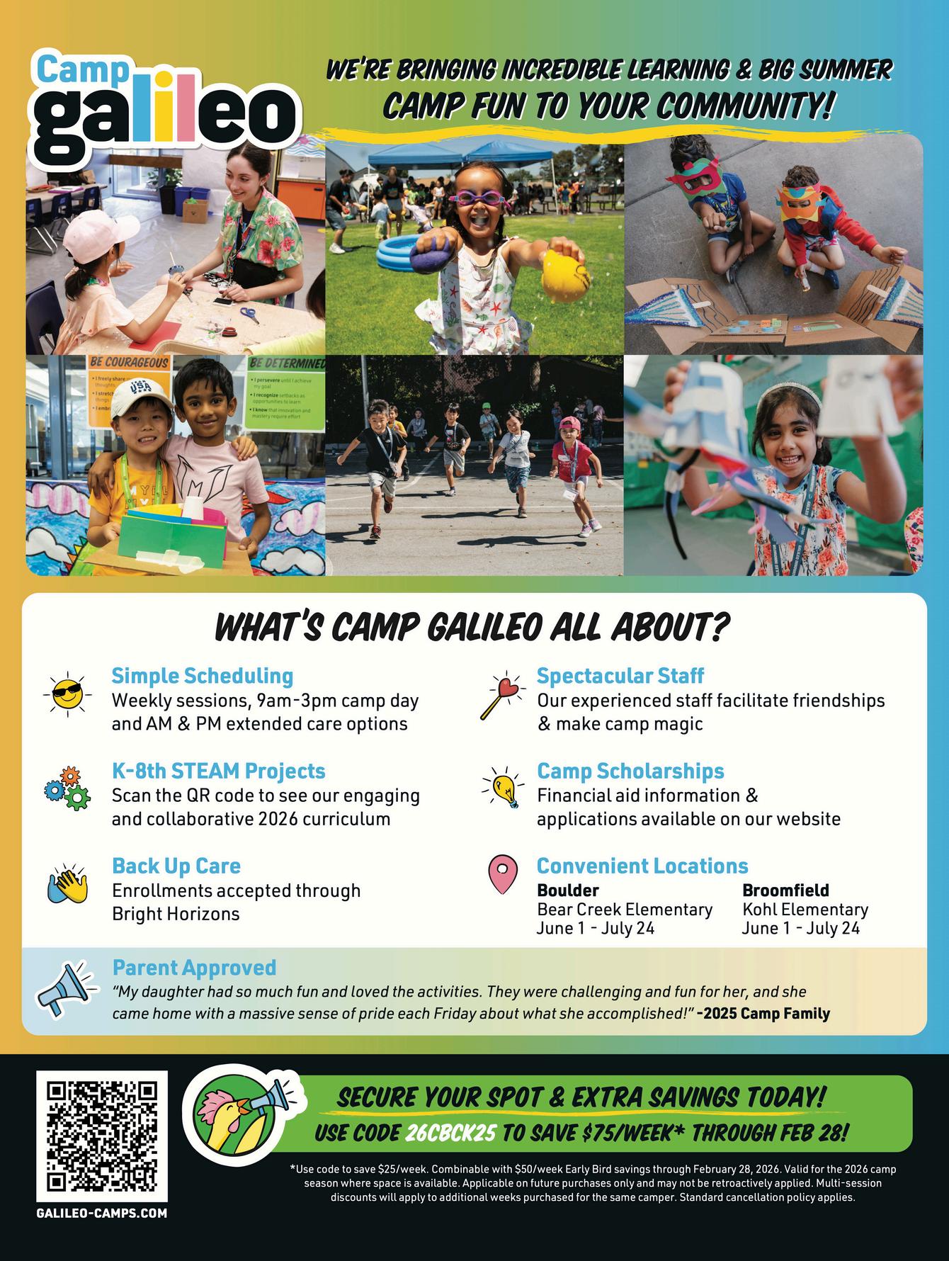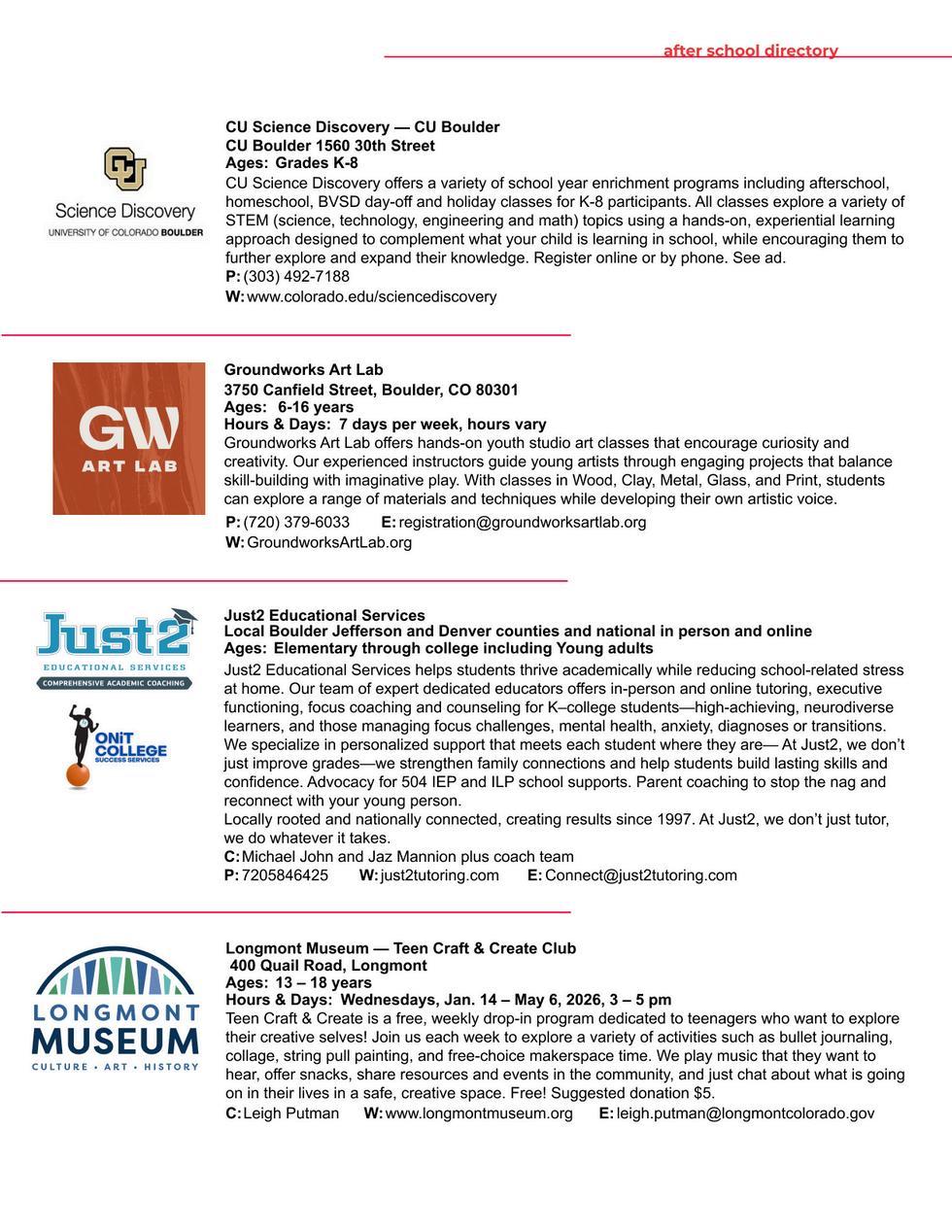 Thank you for welcoming Boulder County Kids into your home. This free community resource thrives because of local readers and supporters To connect, get involved, or advertise in a future issue, reach out anytime at info@bouldercountykids.com. Here’s to a season of fresh air, muddy shoes, and new memories